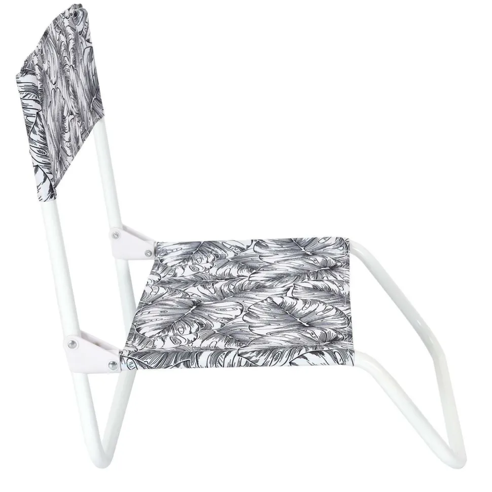 Krzesło plażowe składane to przydatny dodatek, który umili czas spędzany na plaży lub łonie natury. Krzesło sprawdzi się podczas odpoczynku w ogrodzie lub na wyjeździe na ryby. Małe, poręczne krzesło pozwoli na wygodny relaks. Metalowa konstrukcja oraz siedzisko i oparcie z tkaniny to połączenie, które sprawdza się od lat w produkcji mebli zewnętrznych. Krzesło posiada przyjemny dla oka wzór, który występuje w czterech wariantach.