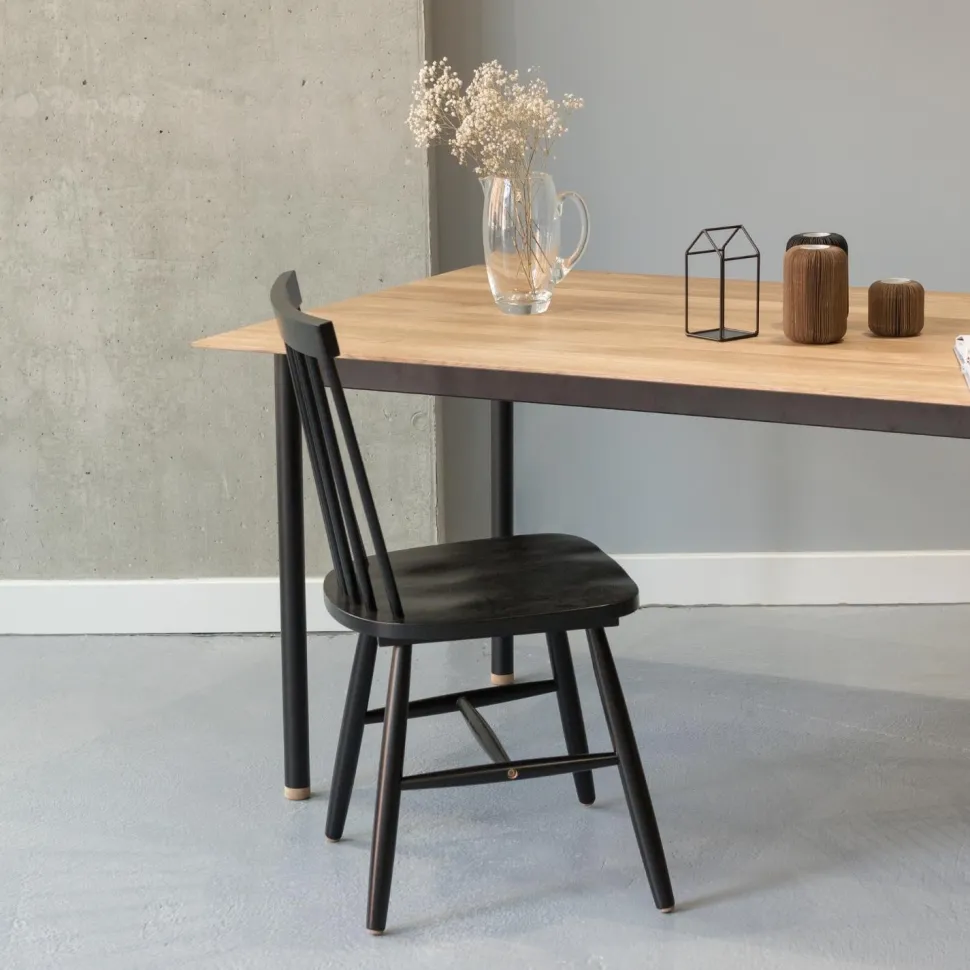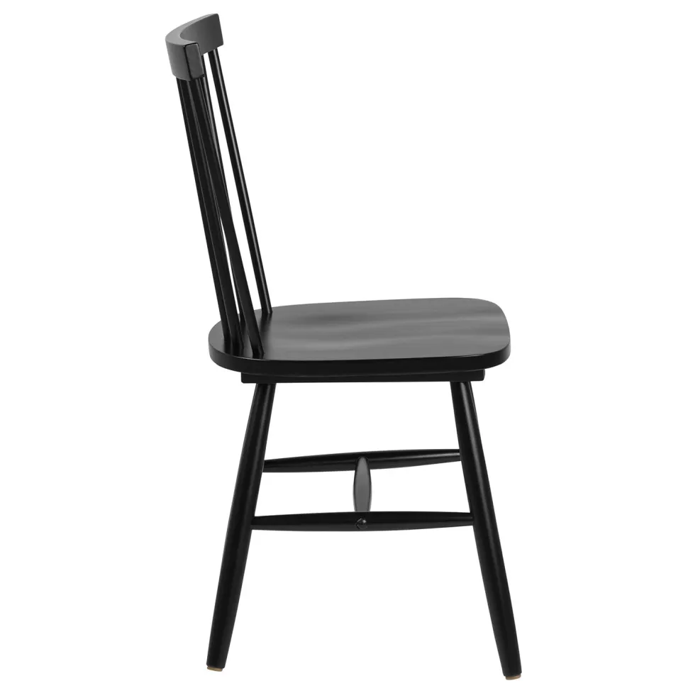 Krzesło Riano w kolorze czarnym to drewniana klasyka w najlepszym wydaniu. Szerokie oparcie z charakterystycznymi szczebelkami przechodzi w proste siedzisko i smukłe nogi złączone wspornikami. Wykonane z wytrzymałego drewna kauczukowego klasyczne krzesło będzie doskonałym wyborem do jadalni w stylu skandynawskim, salonu w stylu retro czy rustykalnej restauracji. Głębokie siedzisko i zaokrąglone oparcie dają gwarancję wygody, a solidna konstrukcja sprawia, że krzesło drewniane Riano będzie inwestycją na lata. Zgrabna budowa krzesła „patyczak” (wymiary: 48 cm x 86 cm x 48, 5 cm) pozwala na dopasowanie go nawet do niedużej przestrzeni.