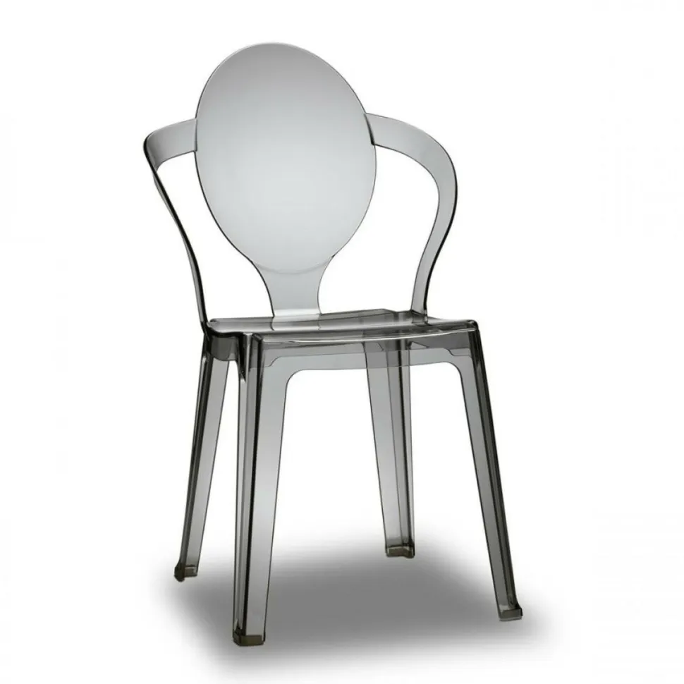 Przezroczyste krzesło z poliwęglanu o nazwie Spoon to designerski mebel projektu Roberto Semprini. Krzesło Spoon Charakteryzuje się lekko wklęsłym owalnym oparciem, łączy nowoczesną harmonię linii z poręcznym kształtem. Dzięki takiej budowie krzesło możemy sztaplować do stosów na wysokość aż 12 szt. Krzesło wykonane z wytrzymałego tworzywa nadaje się do użytku wewnątrz jak i na zewnątrz. Dzięki zastosowaniu poliwęglanu o najwyższej jakości możemy być pewni, że promienie słoneczne ani deszcz nie wpłyną na wygląd mebla. Maksymalne obciążenie 120 kg.