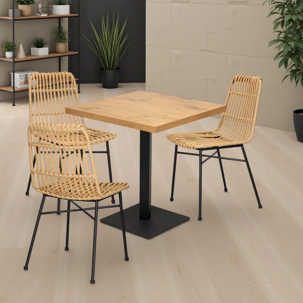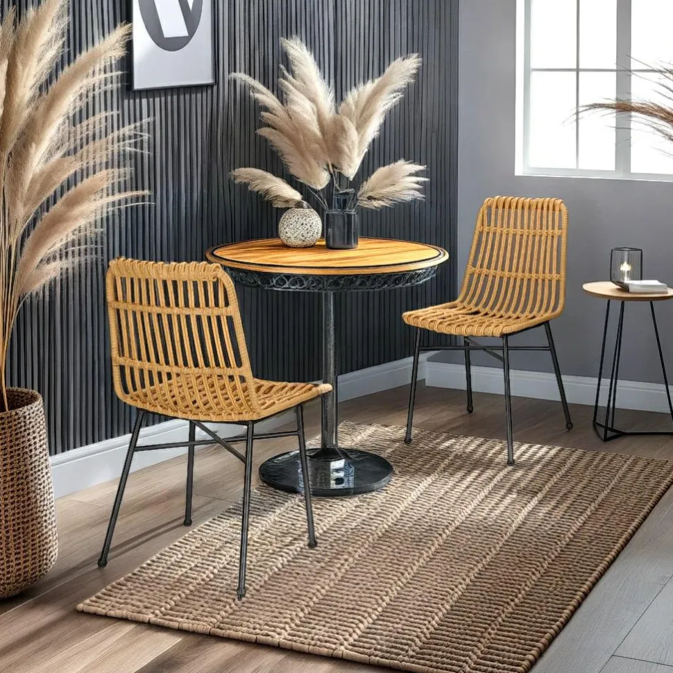 Krzesło Surabaya to połączenie naturalnej barwy technorattanu i czarnej stali. To sprawia, że mebel ten jest niezwykle elegancki i pasuje do wielu wnętrz. Bez względu na to, czy postawisz go w kuchni, jadalni, kawiarni czy na tarasie, zawsze będzie prezentować się doskonale.