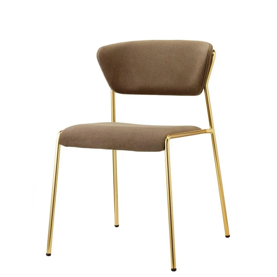 Krzesło tapicerowane Lisa to połączenie nowoczesnego designu, minimalistycznego stylu i wygody. Jest to idealny mebel, który nie tylko uzupełni wystrój Twojej jadalni, salonu, sali konferencyjnej lub poczekalni, ale również stanie się głównym punktem aranżacji. Jegoszkielet wykonany jest ze stali o eleganckim złotym kolorze, co nadaje mu luksusowego wyglądu. Dodatkowo, nogi krzesła są zabezpieczone nakładkami, które chronią podłogę przed zarysowaniami i innymi uszkodzeniami.
