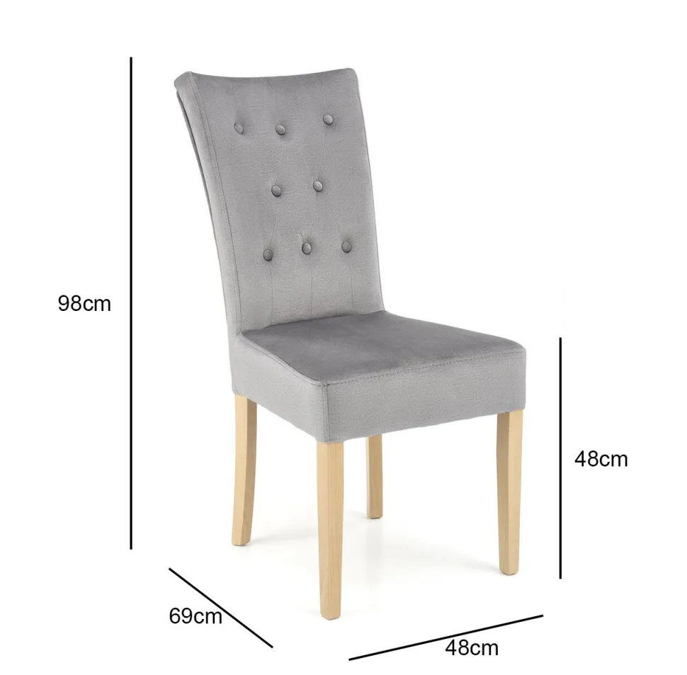 Krzesło Xsavier – bukowe krzesło tapicerowane | Intesi Krzesło Xsavier od Intesi zapewnia styl i wygodę, których potrzebujesz. Tapicerowane krzesło ma ramę z litego drewna bukowego w wykończeniu w kolorze miodowego dębu i aksamitną tkaninę zapewniającą elegancki wygląd. Przedstawiamy krzesło Xsavier, idealne połączenie klasycznej elegancji i nowoczesnego designu. Krzesło to zostało wykonane z przemyślanymi detalami z litego drewna bukowego i ekskluzywnej aksamitnej tkaniny. Krzesło to, wyposażone w zachęcającą podstawę w kolorze miodowego dębu, stanowi idealny dodatek do każdego pomieszczenia. Pod względem rozmiaru jest niezwykle wszechstronny – przy wymiarach 48/69/98 cm jest to krzesło o idealnych proporcjach, które pasuje do każdej przestrzeni, od salonów po biura. Konstrukcja z litego drewna tworzy niezwykle solidną podstawę, która jest trwała. Aksamitna tkanina i subtelny kolor podstawy w kolorze miodowego dębu zapewniają wygodne i przyciągające wzrok wykończenie. Niezależnie od tego, czy potrzebujesz krzesła akcentującego nowoczesny wystrój, czy centralnego elementu do holu, Xsavier dostarczy. O tym warto pamiętać! Ciesz się wyjątkowym i eleganckim wyglądem połączenia litego drewna i aksamitu Zrelaksuj się w komfortowych warunkach dzięki ergonomicznej konstrukcji fotela Xsavier Rozluźnij się na solidnej i starannie skonstruowanej konstrukcji, która jest trwała Luksusowa aksamitna tapicerka zapewniająca wysublimowaną miękkość za każdym razem, gdy siedzisz