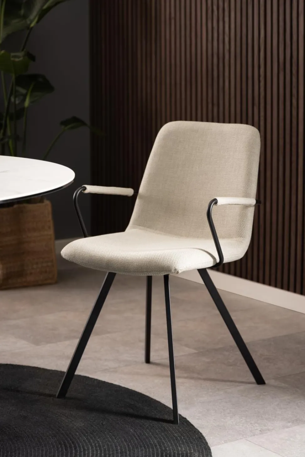 Krzesło Selina to doskonałe połączenie elegancji i funkcjonalności. Wyposażone w podłokietniki, zapewnia komfort podczas długotrwałego siedzenia, na przykład podczas rodzinnych obiadów czy spotkań ze znajomymi. Wytrzymałe metalowe nogi malowane proszkowo na czarno dodają krzesłu stabilności, a beżowe obicie z poliestru dodaje mu klasy i elegancji. Warto podkreślić, że jest to duński projekt, dostępny wyłącznie dla marki Actona.