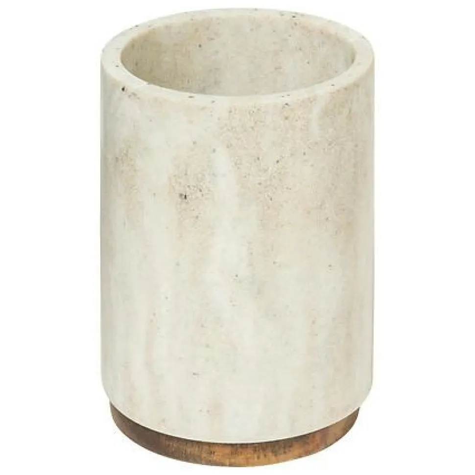 Materiały, z których wykonano kubek na szczoteczki Côme, gwarantują jego długotrwałe użytkowanie. Poliresina to tworzywo sztuczne o wysokiej odporności na uszkodzenia, które idealnie naśladuje wygląd naturalnego kamienia. Drewno akacji natomiast dodaje produktowi elegancji i ciepła. Te dwa materiały tworzą harmonijną całość, która będzie pasować do różnych stylów wnętrz – od glamour, przez minimalistyczny, po nowoczesny i klasyczny.