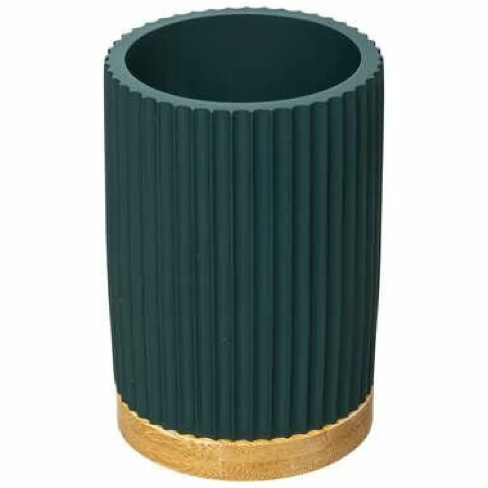 Elegancki kubek z bambusa i żywicy poliestrowej sprawi, że Twój pojemnik na szczoteczki do zębów będzie wyglądał nowocześnie i stylowo. Bambusowa podstawa zapewnia bezpieczeństwo, dzięki czemu idealnie pasuje do każdego blatu łazienkowego. Nowoczesny kubek na szczoteczki do zębów to idealny dodatek do Twojej łazienki!