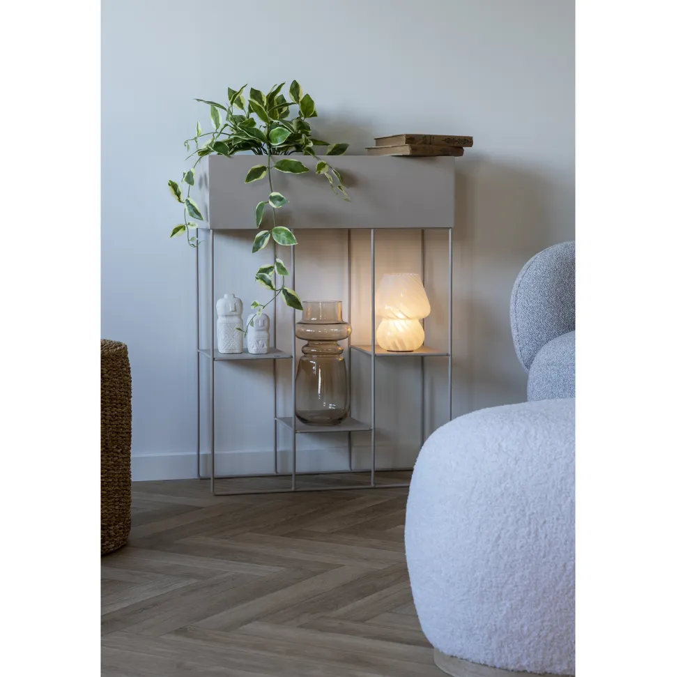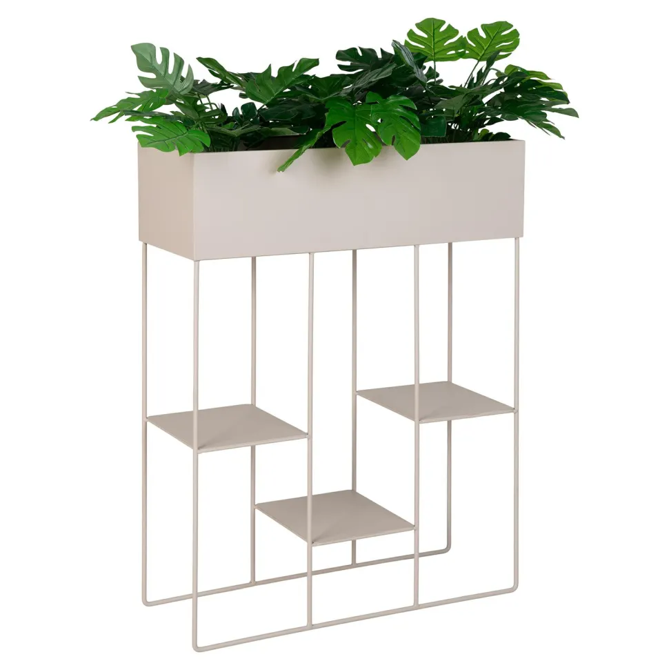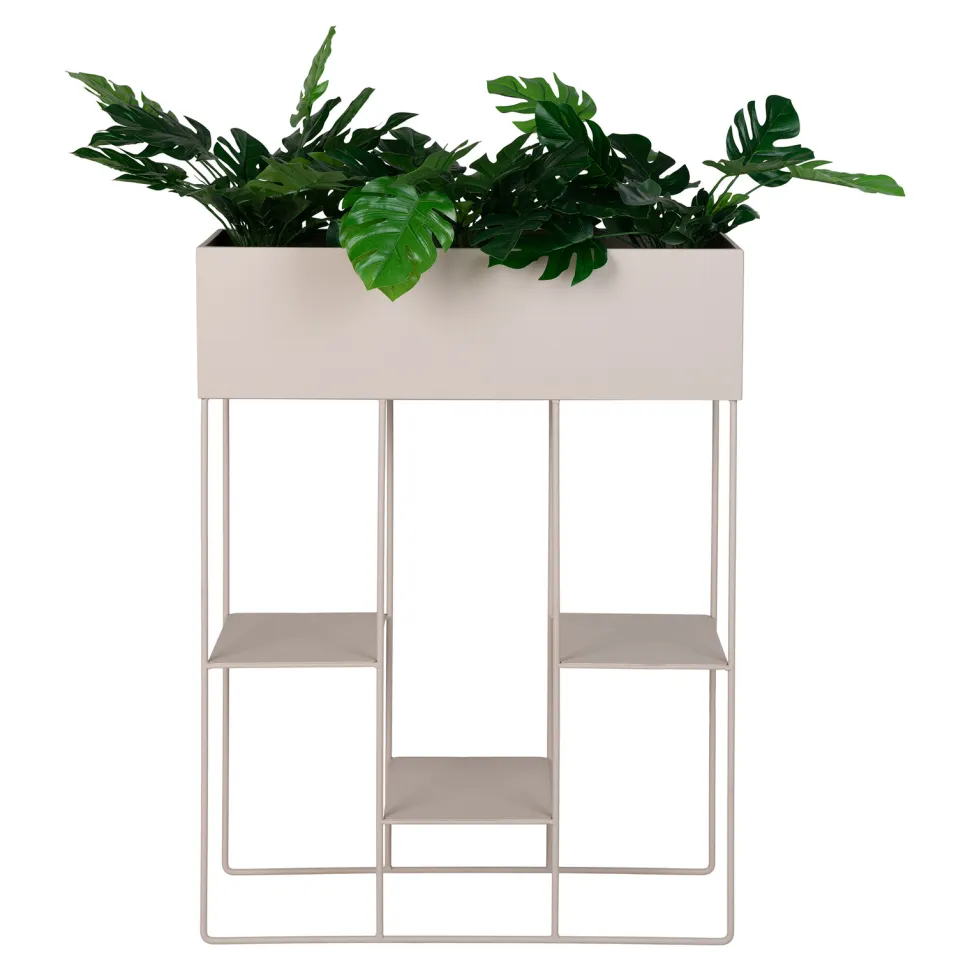 Intesi prezentuje Kwietnik Rabo, donicę o wyjątkowym designie, która wprowadzi do Twojego wnętrza niepowtarzalny klimat. Beżowy kolor donicy wprowadzi do pomieszczenia przytulną atmosferę, jednocześnie zachowując elegancki wygląd. Wykonana z wysokiej jakości stali piaskowej, gwarantuje trwałość i solidność. Dzięki trzem półkom, możesz stworzyć kreatywne aranżacje roślin i donic, dodając charakteru każdemu pomieszczeniu.