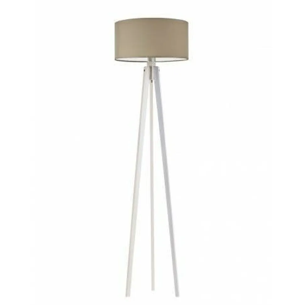 Lampa podłogowa Miami wyróżnia się ciekawą konstrukcją, tworzoną przez trzy drewniane nogi i tkaninowy abażur, Wzrok przykuwa drewniana podstawa oraz konstrukcja przypominająca budową statyw aparatu fotograficznego, Design lampy w udany sposób żongluje koncepcjami – z jednej strony klasyczny abażur, z drugiej nowoczesny kształt,WYMIARY ABAŻURU:wysokość – 20 cm, szerokość – 40 cmWYMIARY LAMPY:wysokość – 148 cm, szerokość – 40 cmKOLOR ABAŻURU: beżowyKOLOR STELAŻA: białyMATERIAŁ:stelaż – elementy drewniane, abażur – holenderska tkanina tekstylna podklejona na folii PVC