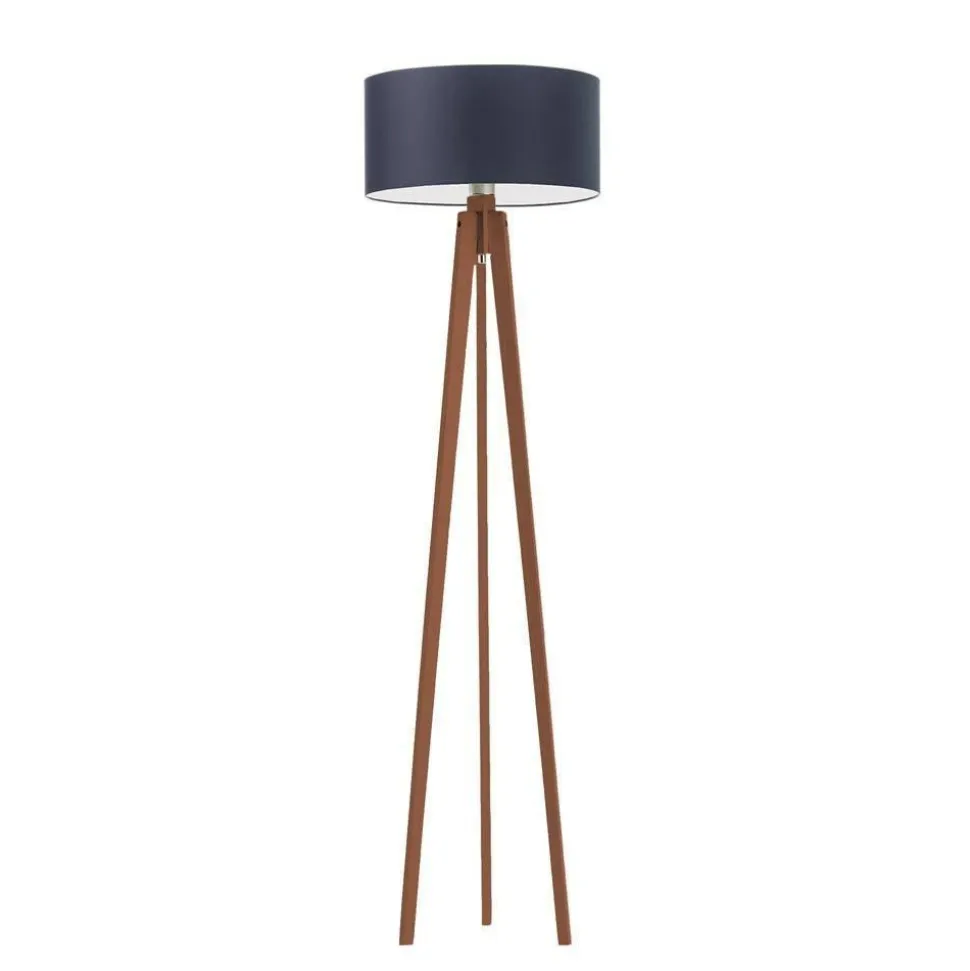 Lampa podłogowa MIAMI abażur granatowy stelaż mahoniowy