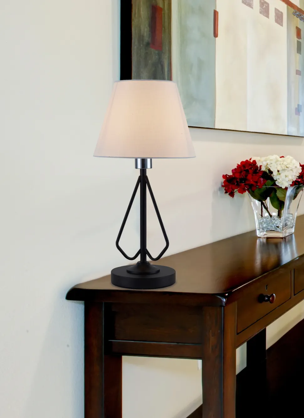 Rodzina klasycznych lamp wykonanych z czarnego metalu z białym, tkaninowym abażurem. Seria składa się z dwóch żyrandoli, kinkietu i lampy stołowej. Rodzina doskonale nadaje się do pomieszczeń takich jak: salon, sypialnia, jadalnia, gabinet. Uniwersalna stylistyka rodizny sprawia, że będzie dobrze się komponować zarówno w klasycznych, jak i nowoczesnych wnętrzach. Lampa stołowa z jednym punktem świetlnym. Żarówka nie jest dołączona do produktów z zewnętrznym źródłem światła.