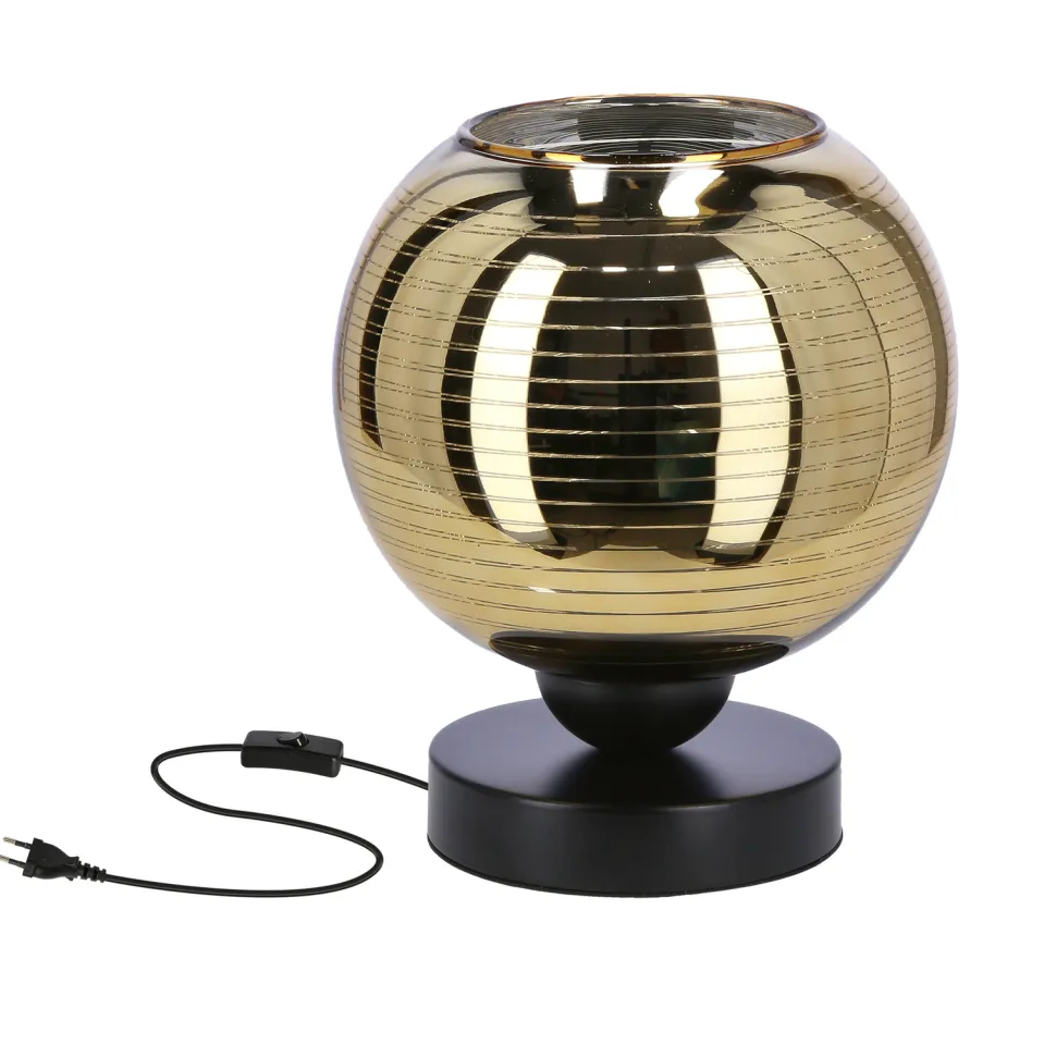 - Złoty klosz lampy tworzy ciepłe i przyjemne światło, idealne do tworzenia przytulnej atmosfery.