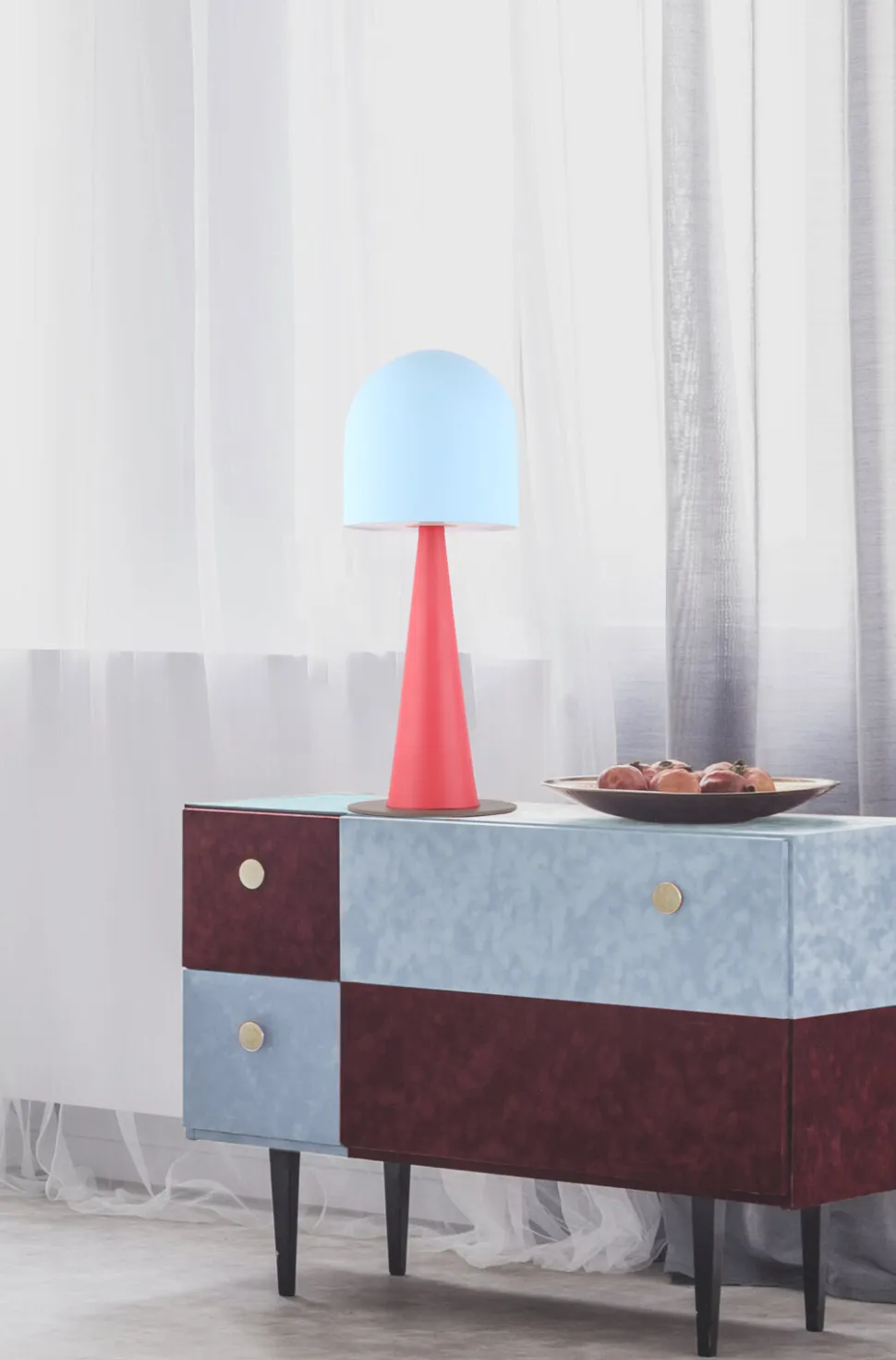 Seria metalowych lamp adresowanych do nowoczesnych wnętrz. Oryginalne wzornictwo i połączenie wielu kolorów sprawiają, że wnętrzne nabiera niepowtarzalnego charakteru. Lampy nadają się do salonu, przedpokoju, sypialni oraz pokoju dziecięcego. Czerwono-niebieska lampa stołowa z jednym punktem świetlnym. Żarówka nie jest dołączana dla produktów z zewnętrznym źródłem światła.