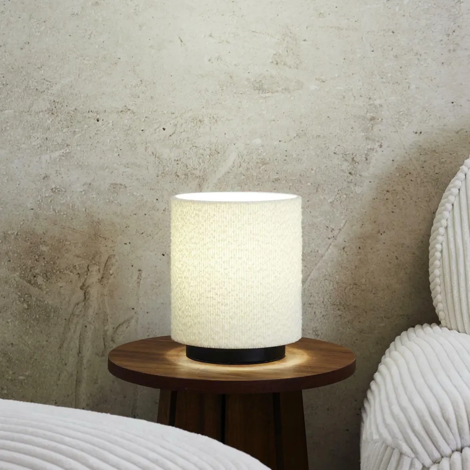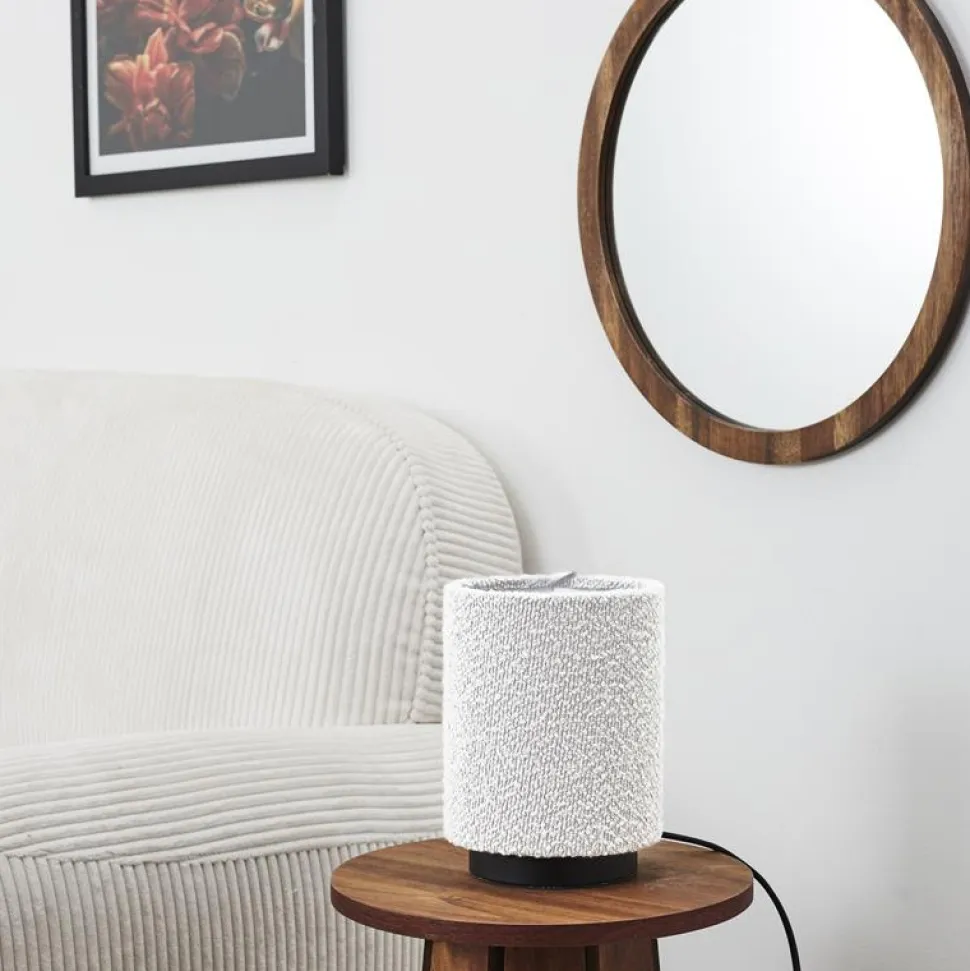 Lampa stołowa z kloszem boucle biała – elegancja spotyka funkcjonalność