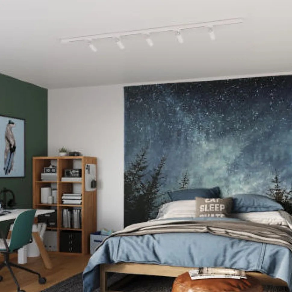 Nowoczesna lampa punktowa zamocowana na szynie, charakteryzująca się cylindrycznym korpusem w matowym kolorze jest elementem do konfigurowania systemu oświetlenia szynowego. Jej minimalistyczny design i subtelne wykończenie sprawiają, że doskonale wpasowuje się w różnorodne wnętrza, dodając im elegancji i nowoczesnego stylu. Biały kolor lampy nadaje jej uniwersalny charakter, dzięki czemu harmonizuje zarówno z jasnymi, jak i ciemnymi aranżacjami.