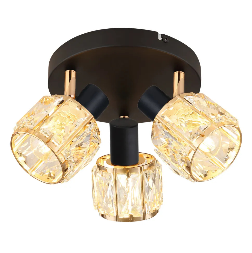 Doskonałe oświetlenie stanowi kluczowy element każdego wnętrza. Lampa sufitowa Dubai plafon łączy w sobie elegancję i nowoczesność, tworząc unikalny design, który przyciąga wzrok. Czarna oprawa lampy tworzy kontrast z kloszami w różowym złocie, które są uzupełnione transparentnym kryształem. Każdy z trzech punktów świetlnych obsługuje żarówki o mocy do 40W, co gwarantuje efektowne i nastrojowe oświetlenie.
