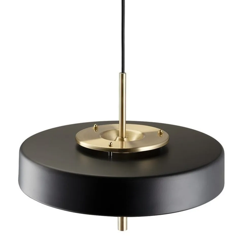 Lampa wyposażona jest w czarny przewód tekstylny o długości 2 m oraz podsufitkę z metalu w kolorze złotym.