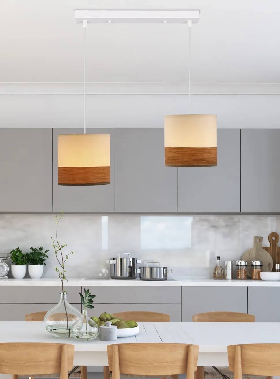 Prezentowana lampa wisząca Bianco to doskonałe połączenie elegancji i funkcjonalności. Jej nowoczesny design, podkreślony przez stylowe połączenie bieli i orzechowego wykończenia, sprawia, że staje się wyjątkowym elementem dekoracyjnym każdego wnętrza. Wyposażona w dwie oprawki E27, zapewnia doskonałe, równomierne rozproszenie światła, tworząc przytulną atmosferę w pomieszczeniu.