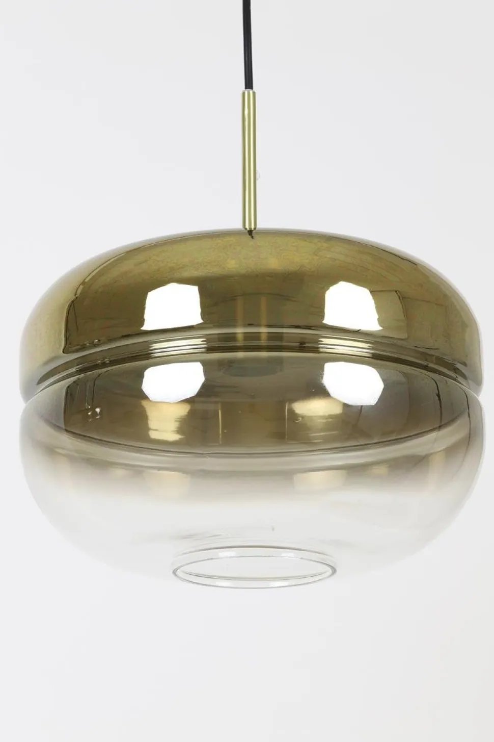 Lampa wisząca Cherle została zrobiona ze szklanego abażuru w odcieniu złotym. Abażur powieszony został na czarnym, regulowanym przewodzie, Lampa idealnie sprawdzi się po zamontowaniu nad stołem, gdzie będzie wyglądać bardzo stylowo i elegancko. Efekt taki zawdzięcza ona nie tylko designowi, w którym obecny jest kolor złoty, ale również ciekawemu i niebanalnemu kształtowi. Jako źródła światła szczególnie poleca się tu żarówki filamentowe o wyglądzie prawdziwej żarówki żarnikowej. Doskonale uzupełniają one wygląd całości.Waga lampy: 1,5 kg