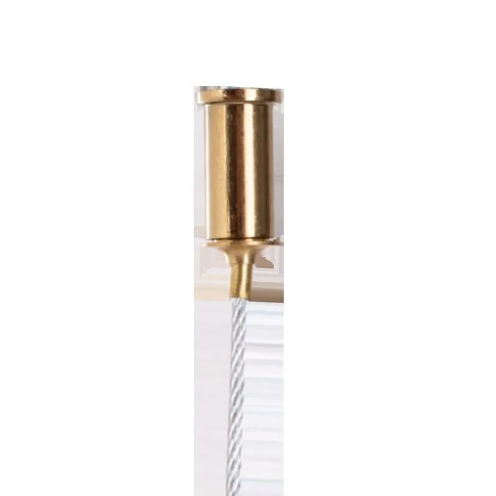 Oprawa lampy została wykonana ze stali nierdzewnej w kolorze szczotkowanego mosiądzu.