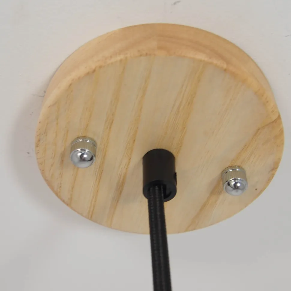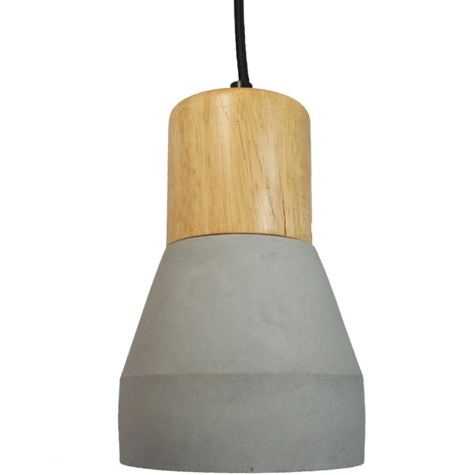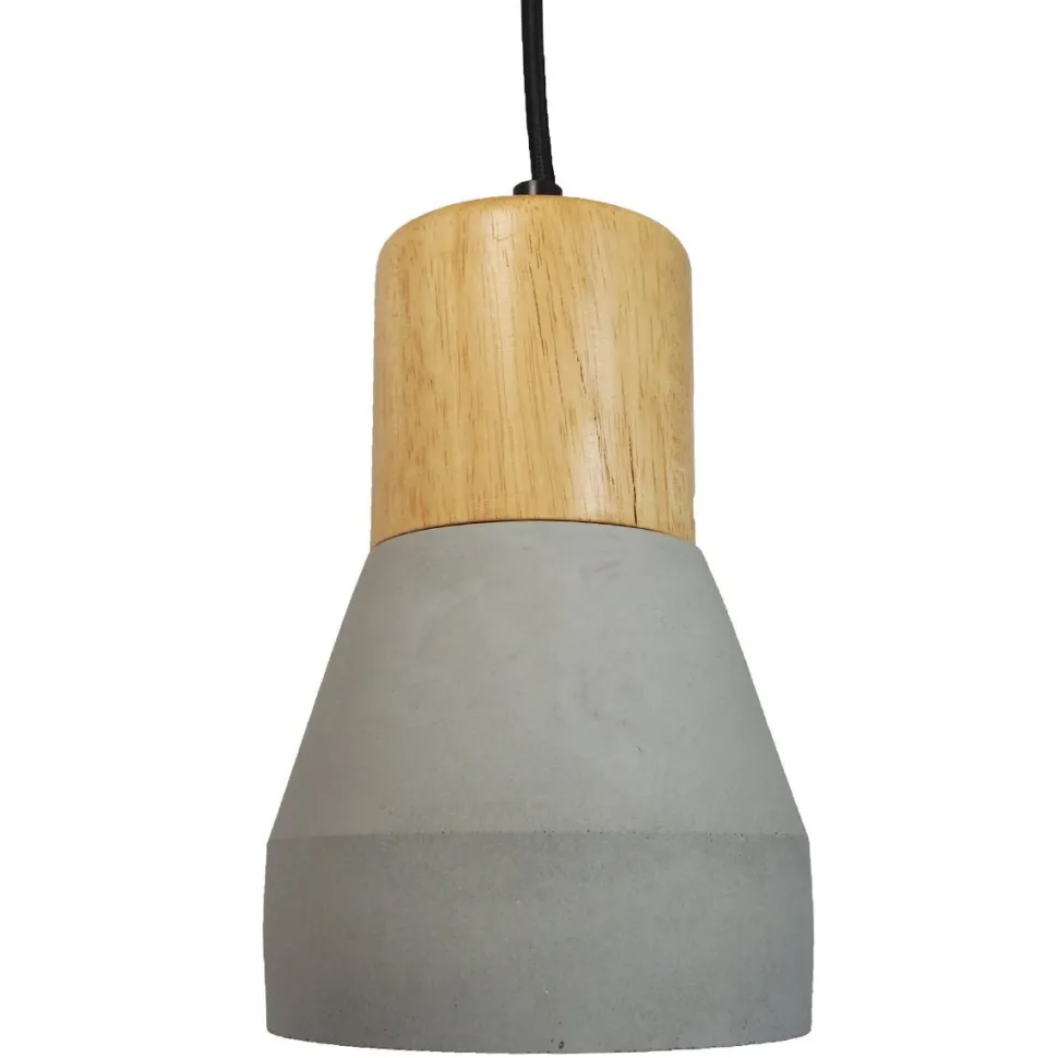 Wykonana z betonu i wykończona prawdziwym drewnem, z czarnym kablem w oplocie tekstylnym.
