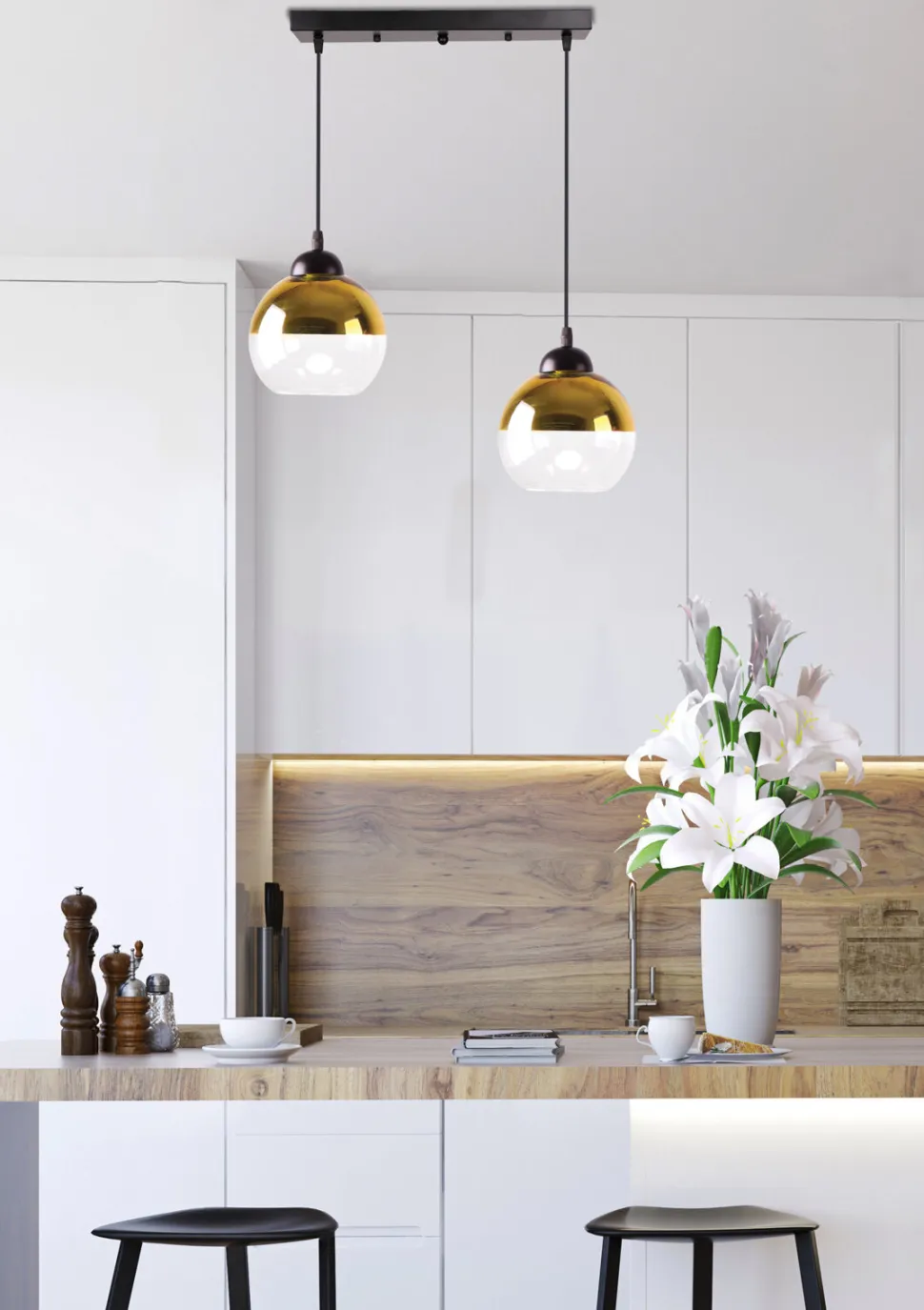 Niezwykła elegancja i nowoczesność to główne cechy charakterystyczne lampy wiszącej Contessa. Dzięki unikalnej kombinacji kolorystycznej – lustrzanego złota na górze klosza i przezroczystego szkła na dole, lampa ta staje się niezwykle stylowym elementem dekoracyjnym. Czarna podstawa dodaje jej klasy i podkreśla wyrafinowany charakter. Idealnie wpasuje się w różnorodne wnętrza – od sypialni, przez salon, aż po kuchnię czy jadalnię.