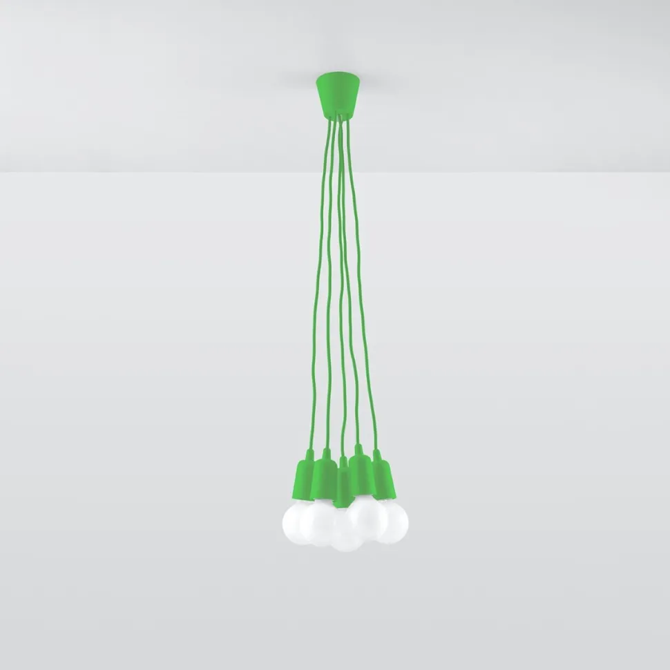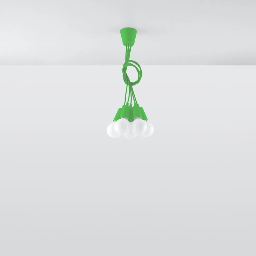 Lampa Diego dostępna jest w wielu różnych opcjach. Wyborowi podlegają kolory lampy, które mogą być zarówno stonowane (biały, czarny, szary), ale również bardzo wyraziste i żywe (żółty, pomarańczowy, zielony). Oprócz barwy obudowy i kabla, możliwe jest również wybranie ilości lampek w pęczku. Dostępne są opcje gdzie lampka jest pojedyncza lub zgrupowana w 3 lub 5. Długości kabla są regulowane i zależą od Ciebie. Dodatkowo, lampę można wiązać w popularny supeł, dodając nietuzinkowego akcentu wnętrzu.