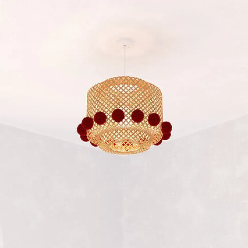 - Dzięki czerwonym pomponom lampa wprowadzi do pokoju dziecięcego ciepłą, przytulną atmosferę.