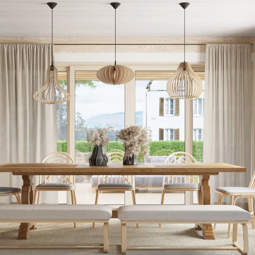 • lampa wisząca z drewna, która podkreśli kreatywność i świeżość wnętrz