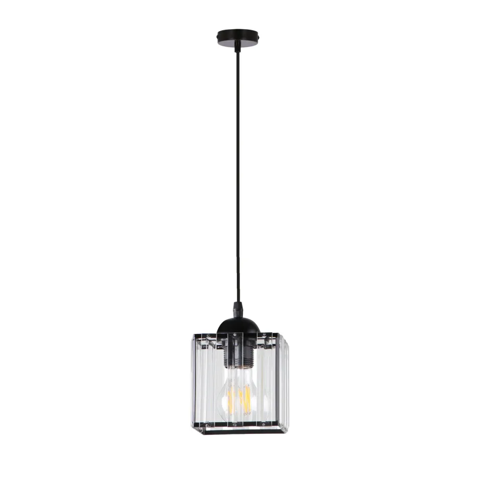 - Nowoczesny design – czarny klosz z przezroczystymi kryształami