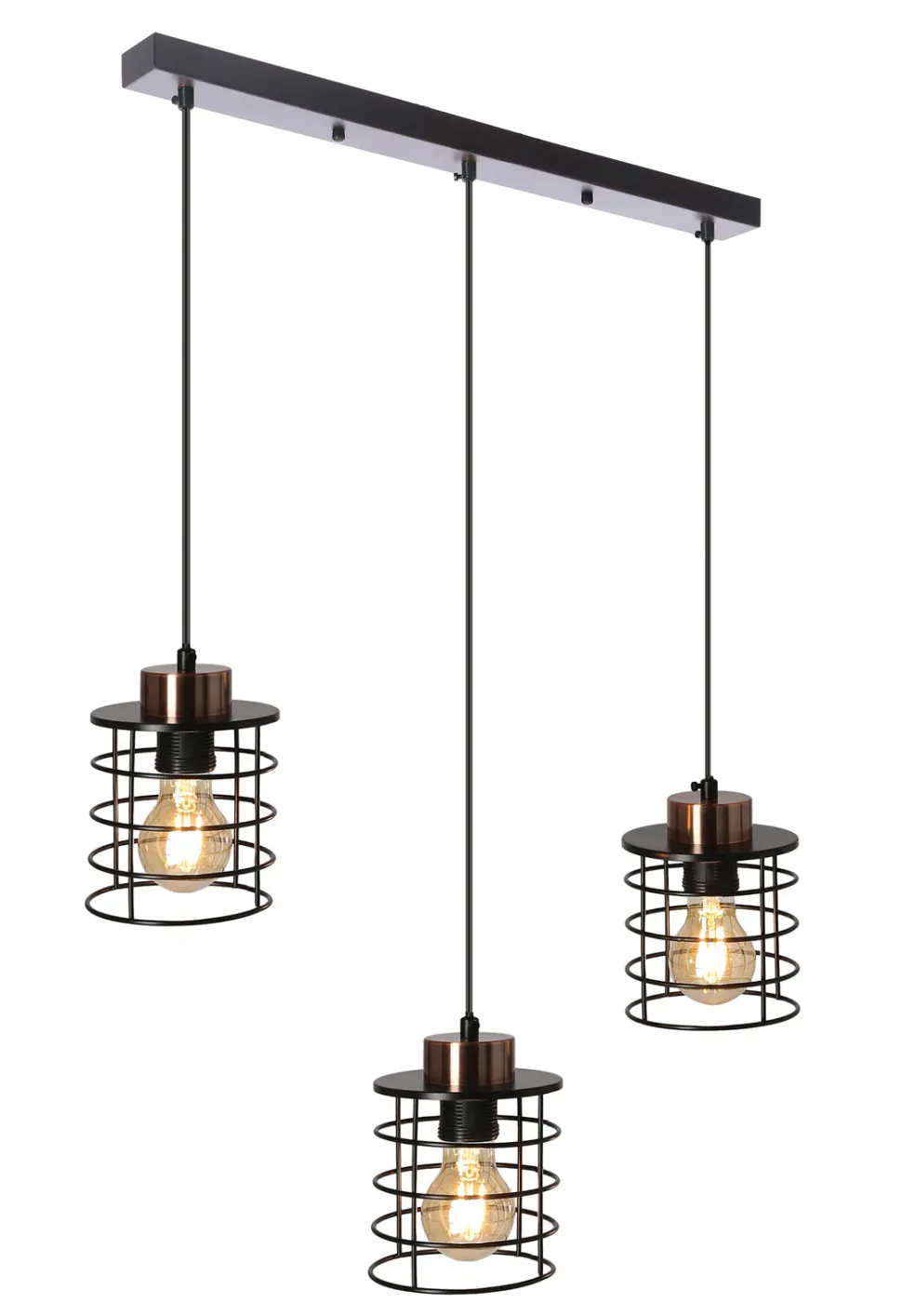Podkreśl wyjątkowy charakter swojego wnętrza za pomocą lampy wiszącej Glob. Ta lampa, z trzema koszyczkami w formie metalowych szkieletów, dodaje nowoczesnego akcentu do każdego pomieszczenia. Klosze w kolorze czarno-miedzianym są umieszczone na eleganckiej czarnej listwie, co dodaje lampie wyrafinowanego wyglądu. Dzięki trzem oprawkom E27, masz możliwość wyboru żarówek według własnych preferencji, co pozwala na dostosowanie natężenia światła do Twoich potrzeb.