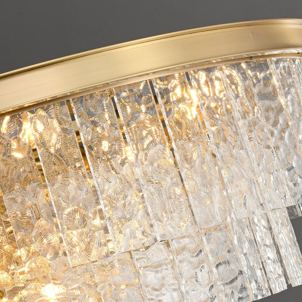 Niezwykle elegancka lampa wisząca ICELAND to kombinacja złotego metalu i kryształów klasy K9. Jej kaskadowa konstrukcja, w której rzędy kryształów są zawieszone na okrągłej, złotej ramie, tworzy efekt luksusu i wytworności. Biały kolor iluminacji dodatkowo podkreśla ten efekt, delikatnie rozpraszając światło i tworząc piękne efekty oświetleniowe.