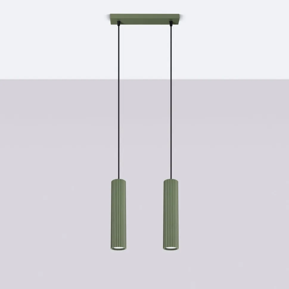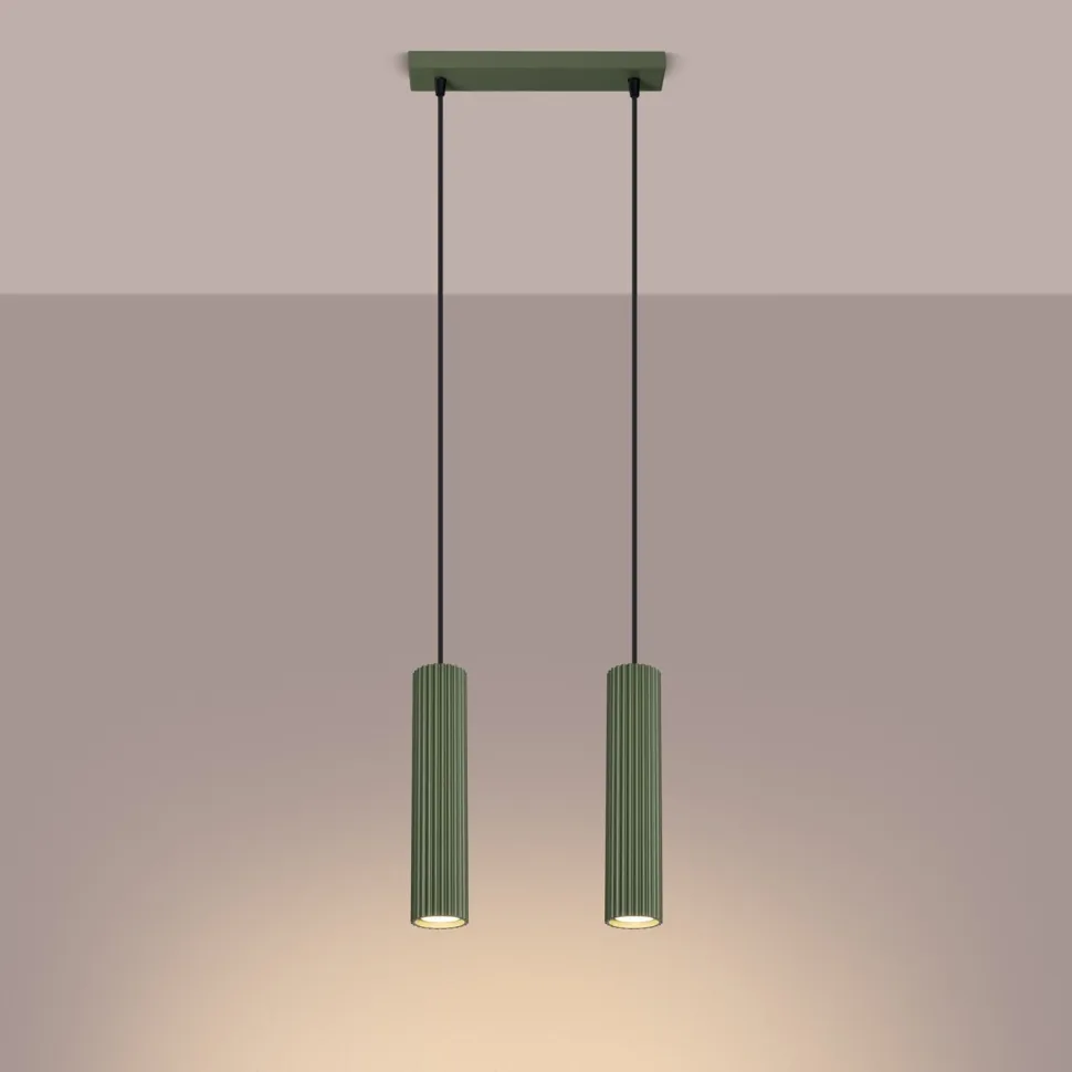 - Lampa wisząca KARBON 2 zielona oliwka, to produkt o nowoczesnym designie i unikalnej, ryflowanej strukturze.