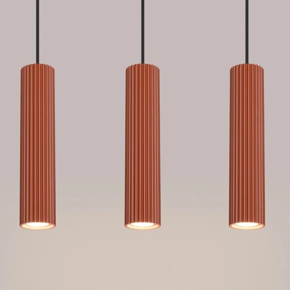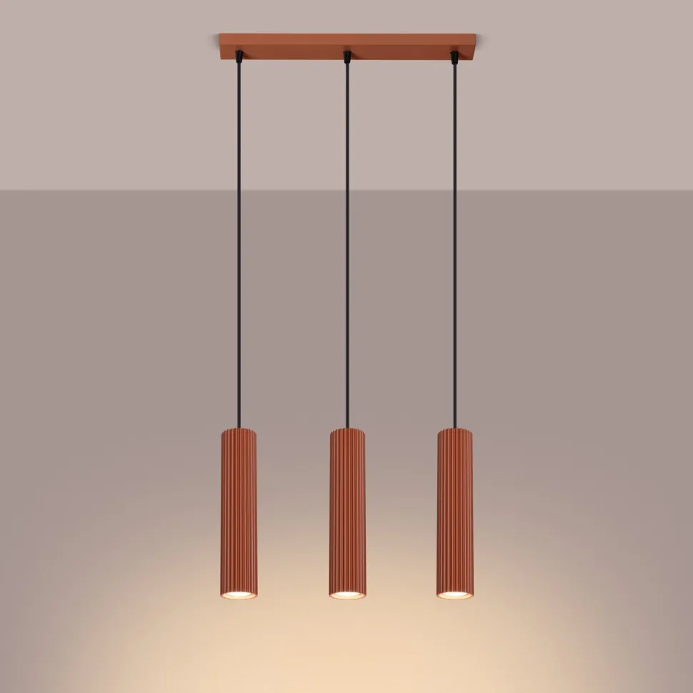 Zaprezentuj swoje wnętrza w nowym świetle dzięki lampie wiszącej KARBON 3L w odcieniu ochry czerwonej. Ten niezwykle nowoczesny element dekoracyjny od SOLLUX LIGHTING MUZOLF , zaskakuje swoją unikalną ryflowaną strukturą. Wykonana z aluminium lampa, doskonale sprawdzi się w różnych pomieszczeniach – od salonu, przez sypialnię, aż po gabinet.