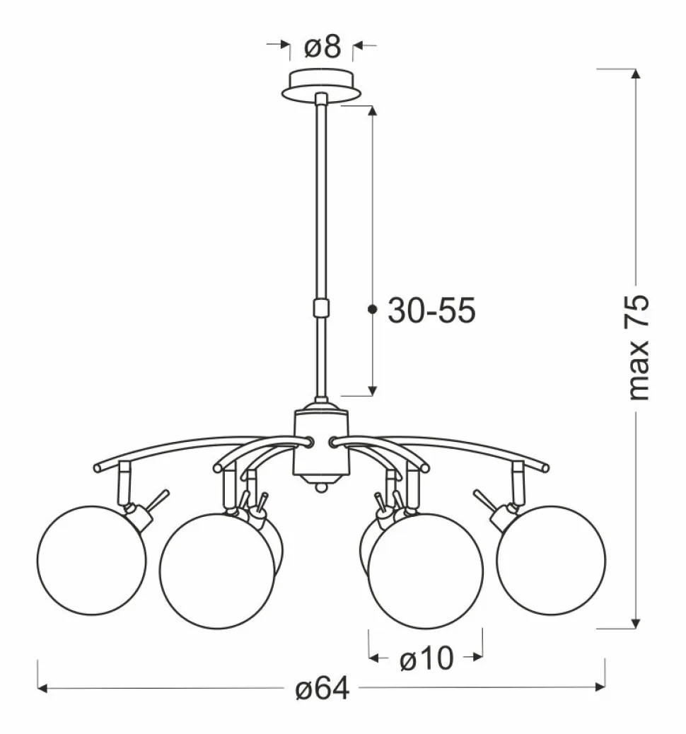 - Produkt wyposażony jest w sześć oprawek na żarówki typu G9, co pozwala na emisję rozproszonego światła.