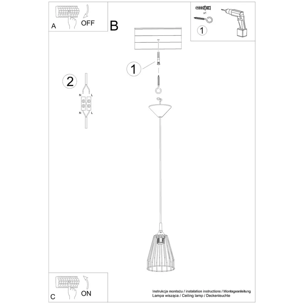 Lampa wisząca LEYO wyposażona jest w oprawę żarówki E27 i ma moc 15W. Dzięki temu zapewnia optymalne oświetlenie, jednocześnie będąc energooszczędnym rozwiązaniem. Pomimo swojego wyrafinowanego wyglądu, lampa jest łatwa w montażu i obsłudze. Należy pamiętać, że żarówka nie jest dołączona do zestawu.