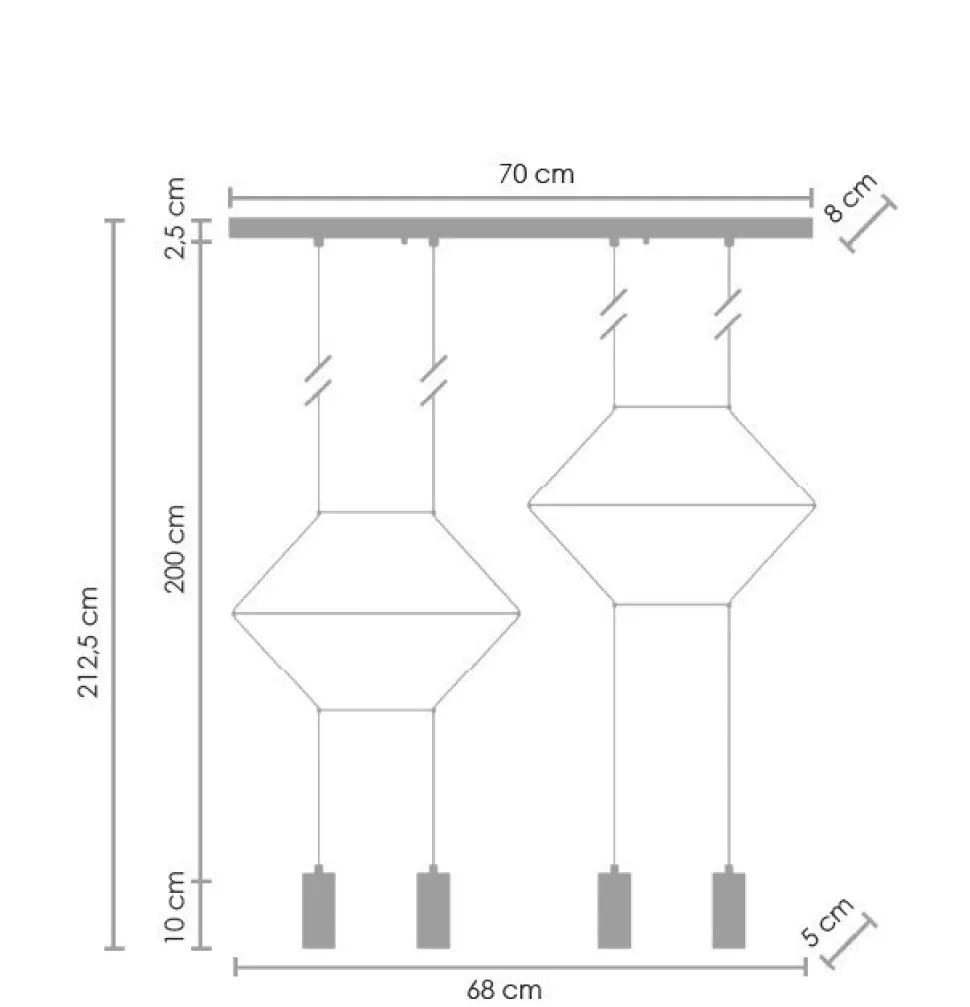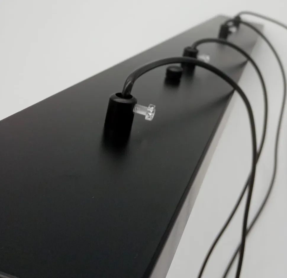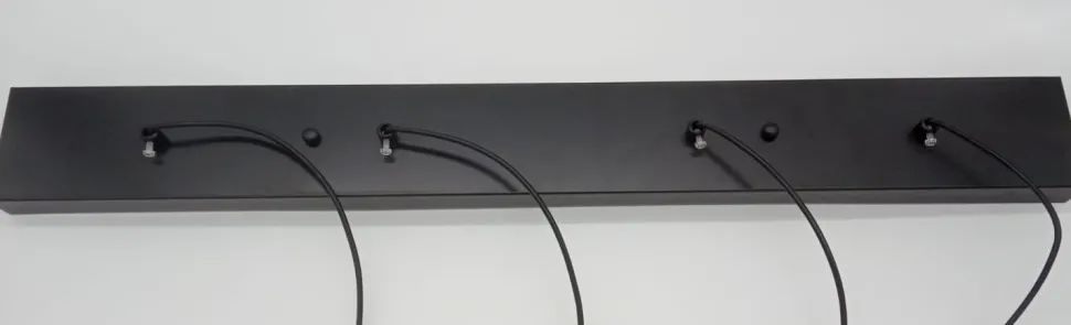 LINEA-4 LONG zasilana jest czteroma punktami świetlnymi zawieszonymi na delikatnych kablach.