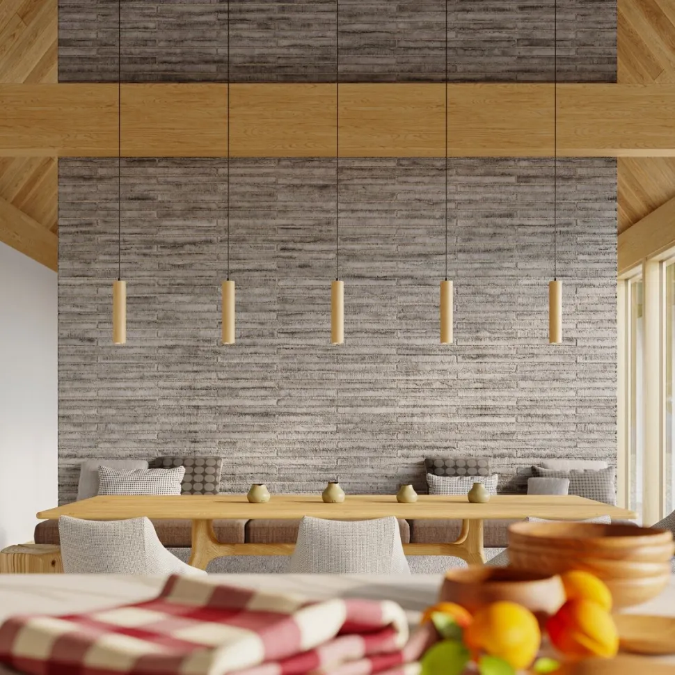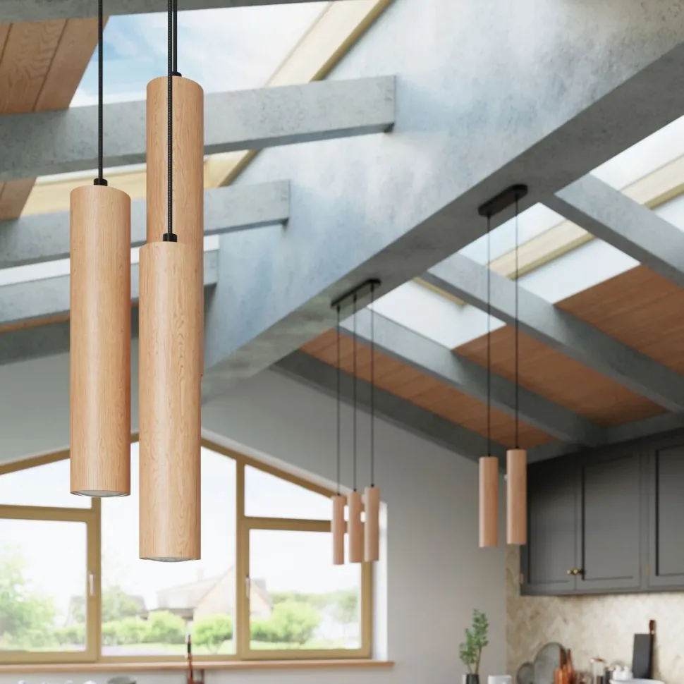 Kolekcja smukłych, eleganckich i niezwykle wyrazistych lamp LINO z powodzeniem rozświetli wnętrza nowoczesnych jadalni, kuchni czy salonów. Dzięki drewnianej strukturze o ciepłym odcieniu doskonale wkomponuje się również w skandynawski czy rustykalny wystrój pomieszczenia. Światło równomiernie rozchodzi się spod wąskiego klosza w kształcie tuby, zapewniając zarówno funkcjonalny, jak i niezwykle estetyczny rezultat. Dzięki czterem dostępnym wersjom lampy wiszącej: z 1, 2 lub 3 punktami światła, możesz wykorzystać ją zarówno w większych przestrzeniach, jak i mniejszych wnętrzach.