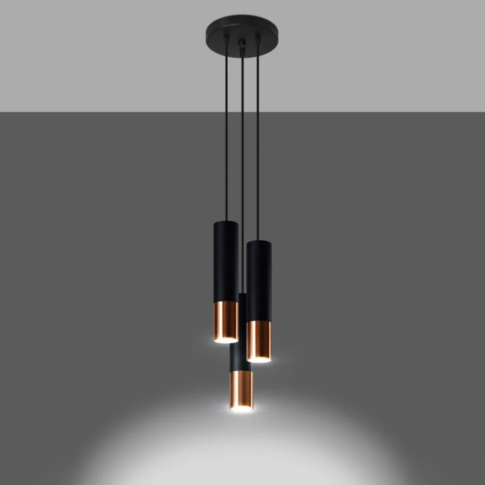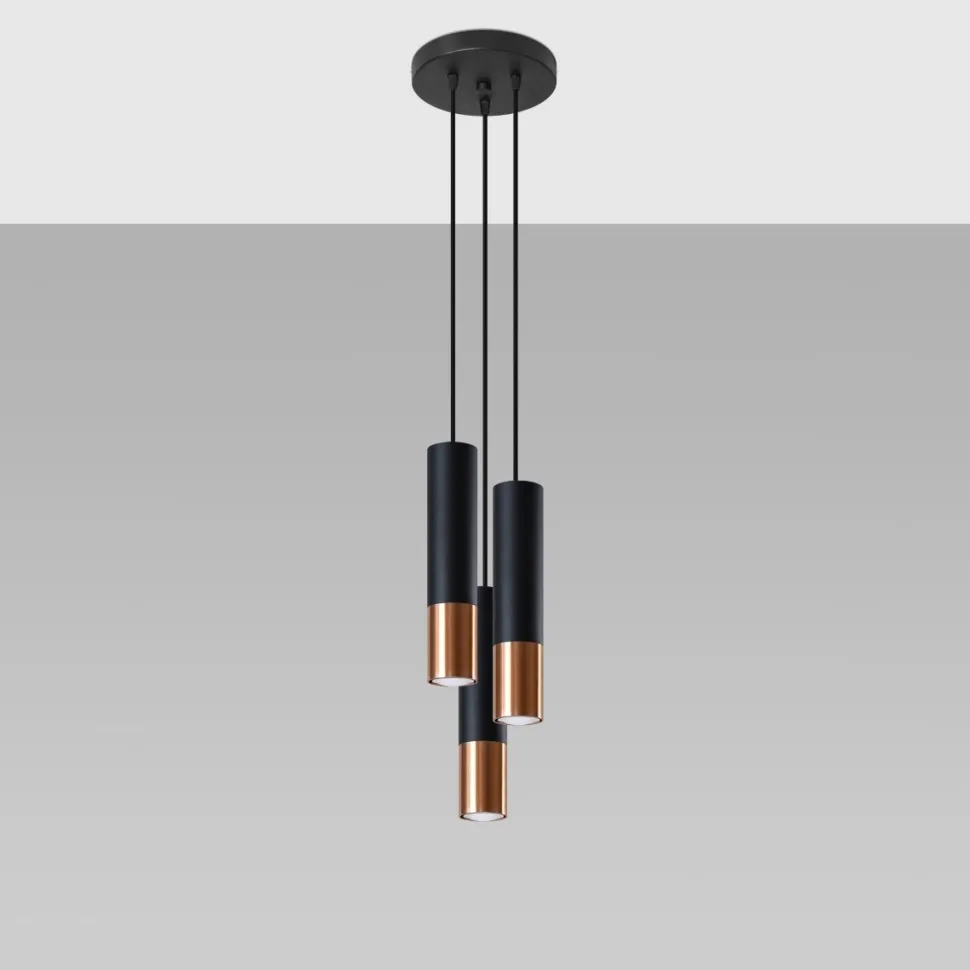 Lampa wisząca Loopez zaprojektowana jest w bardzo modnym stylu. Nowoczesność i elegancja zapewniona jest przez designerskie połączenie kolorystyczne i formę. Szlachetna czerń stali podkreślona jest dodatkami w kolorze chromu, miedzi lub złota. Cylindryczne lampki zawieszone są na kablu co nadaje całości mocnego loftowego charakteru. Dzięki subtelnej ażurowości formy, Loopez sprawdzi się zarówno salonie czy przedpokoju, ale również w jadalni czy nawet hotelu lub restauracji.