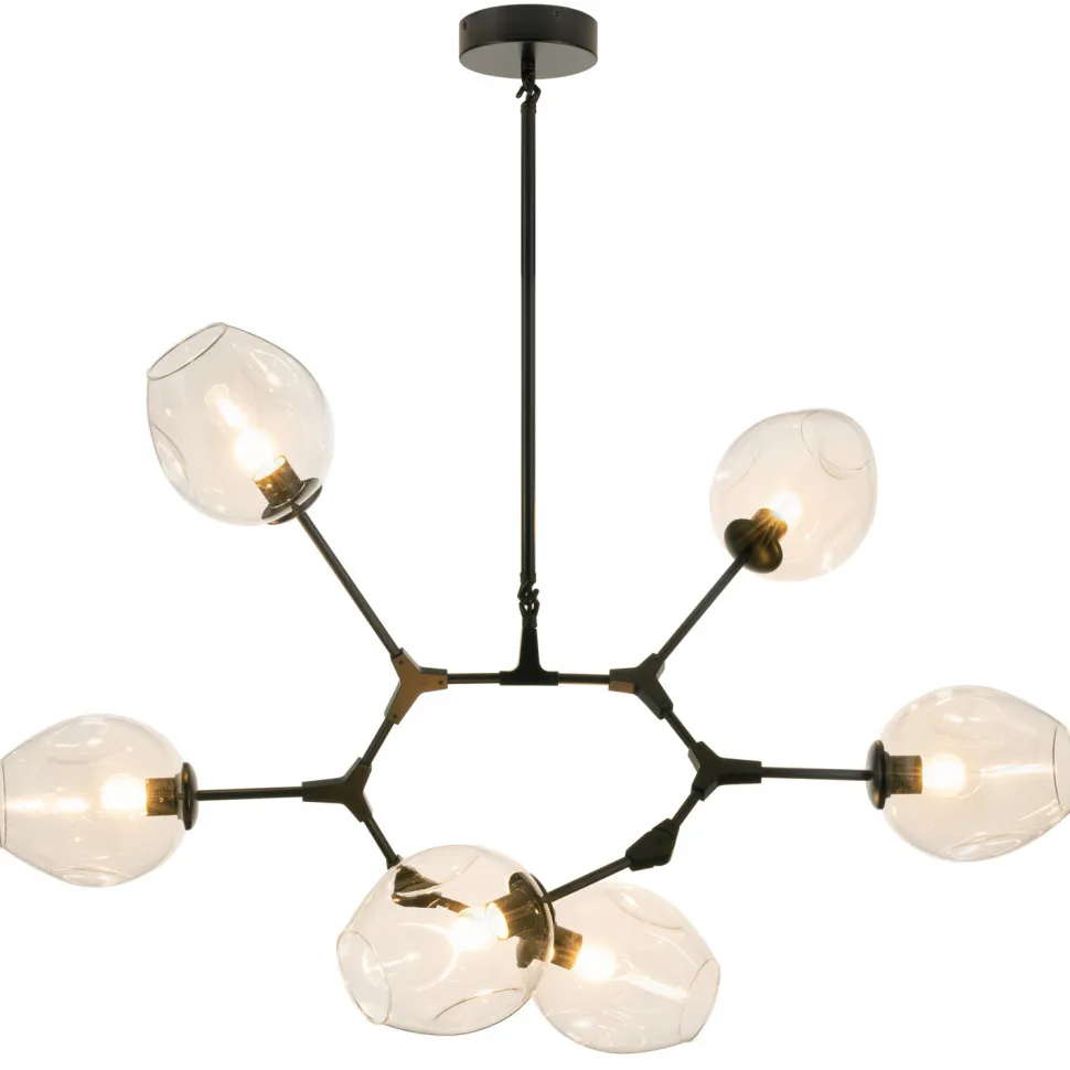 Ta oryginalna konstrukcja o sześciu szklanych, bursztynowych kloszach, pozwala osiągać niebanalne aranżacje, dając rozproszone światło w efektowny sposób.