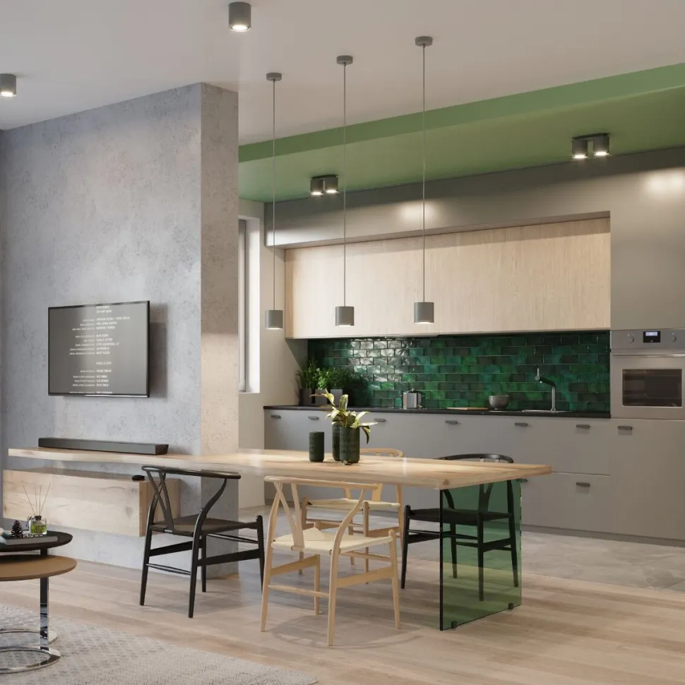 •lampa wisząca w nowoczesnym styludo kuchni i jadalni