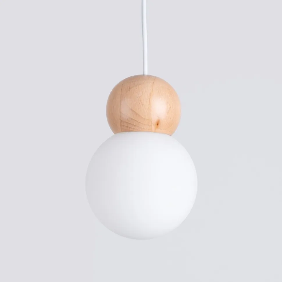- Wykonana z mlecznego szkła i naturalnego drewna, dostępna w wersji pojedynczej i potrójnej.