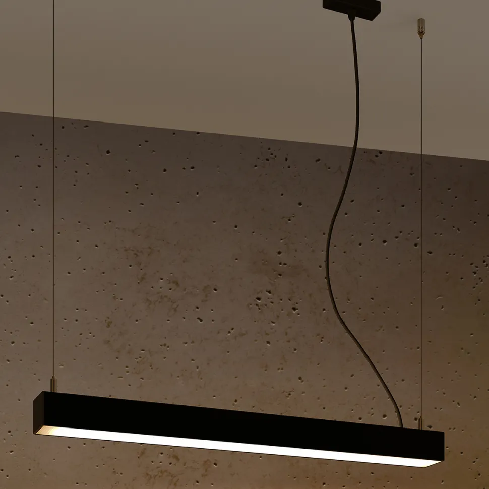 Lampa wisząca zaprojektowana jest w formie podłużnej belki. Metalowy klosz dostępny jest wtrzech kolorach: białym, czarnym i szarym. Do wyboru pozostaje również długość lampy spośródtrzech rozmiarów: 67, 90, 117 i 150 cm. W zestawie do dołączona jest również żarówka. W kolekcji Pinne dostępne są nie tylko lampy wiszące, ale również plafony i kinkiety, przez co łatwo będzie znaleźć pasujące dodatkowe źródła światła w razie gdyby ta lampa nie była jedynym oświetleniem przestrzeni.