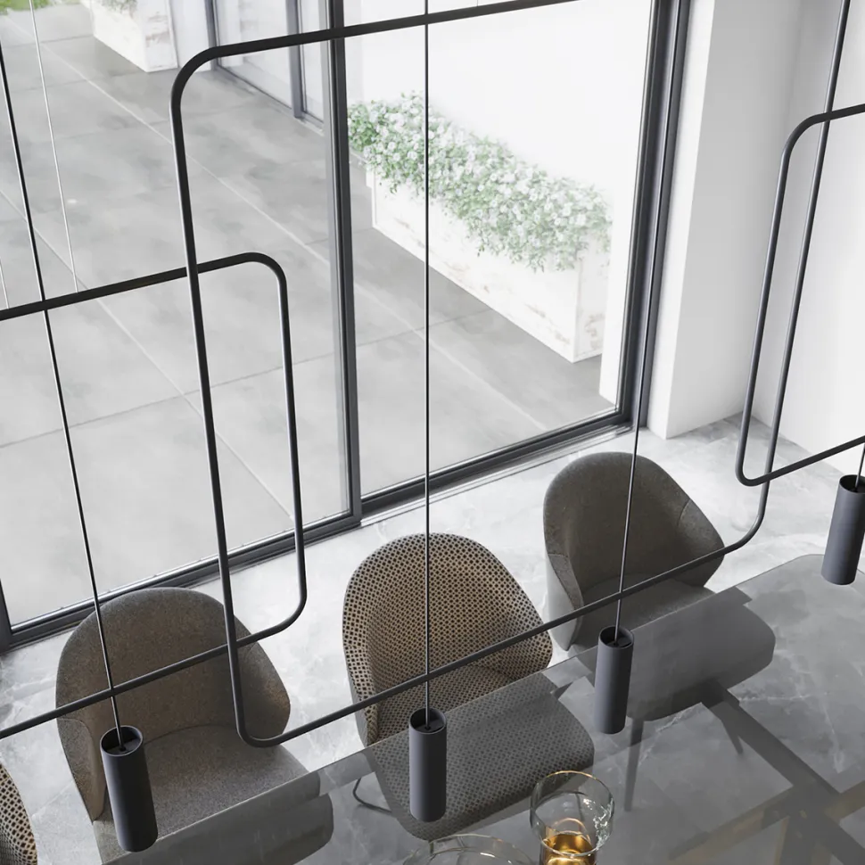 Twoim celem jest znalezienie opraw oświetleniowych, które podkreślą minimalistyczny styl wnętrza? Pomoże Ci w tym kolekcja lamp wiszących Rana. Jest to niezwykłe połączenie cech praktycznych z efektem wizualnym opartym na przemyślanej formie. Charakterystyczny kształt ramy w postaci kwadratu, przecięty wyraźnym pionem ze stalowej liny sprawia, że całość wygląda niezwykle nowocześnie, a przy tym nie zbyt nachalnie. Dzięki temu będzie doskonałym uzupełnieniem wnętrz salonów i jadalni, a także wysokich klatek schodowych. Idealnie nada się nad stoły i blaty ze względy na wiszące tuby kierujące światło w dół.