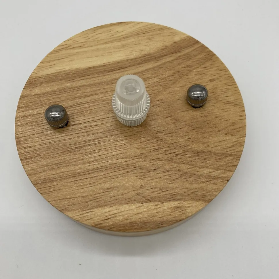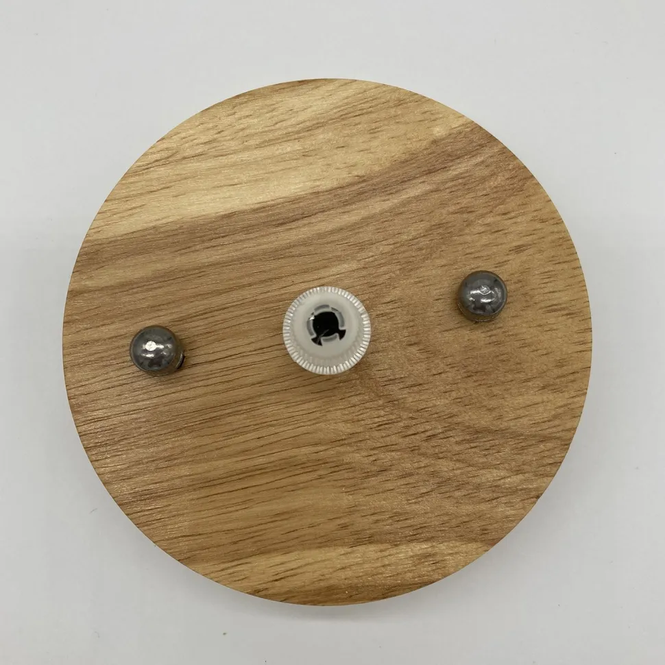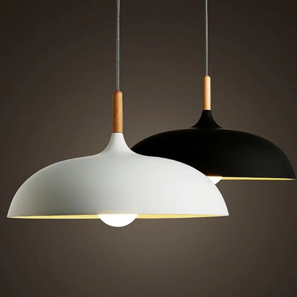 Biały klosz wykończony jest prawdziwym drewnem, idealnie nadaje się do modnych przestrzeni w stylu scandi.