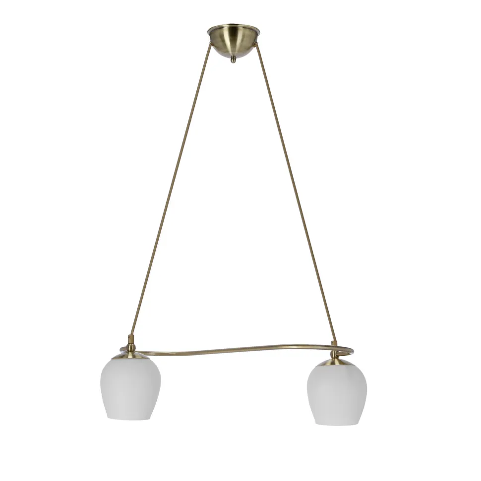 Prezentujemy lampę wiszącą Serano, która swoim unikalnym designem nada Twojemu wnętrzu wyjątkowy klimat. Została ona wykonana z najwyższej jakości materiałów, takich jak szkło i stal, które gwarantują jej trwałość i odporność na uszkodzenia. Patynowe wykończenie dodaje jej niepowtarzalnego charakteru, a białe klosze doskonale rozpraszają światło, tworząc przytulną atmosferę. Dzięki dwóm punktom świetlnym, zasilanym przez żarówki o mocy do 60W (typu E27), lampa ta jest idealna do różnych pomieszczeń, takich jak salon, sypialnia czy przedpokój.
