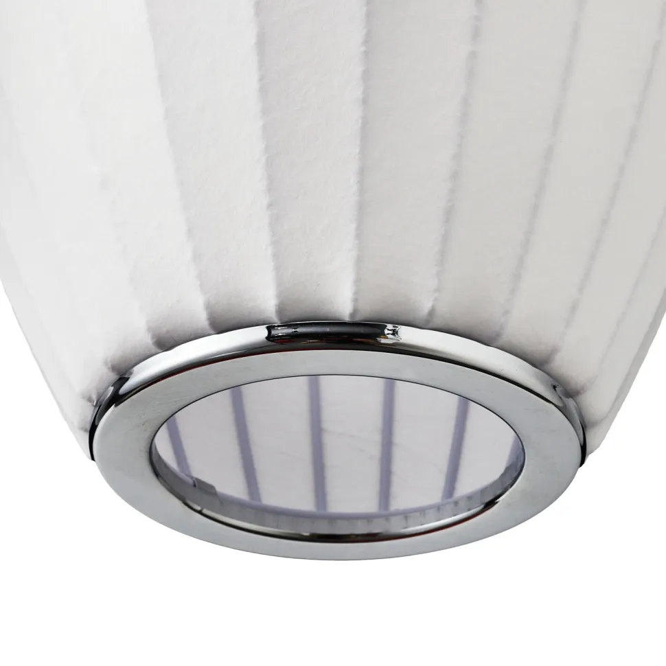 Prezentowana lampa wisząca SILK BARREL o długości 60 cm to połączenie nowoczesności i elegancji. Jej klosz, wykonany z jedwabiu, ma wydłużoną formę przypominającą wrzeciono, które subtelnie rozprasza światło. Srebrne metalowe detale dodają lampie nowoczesnego wyglądu, dzięki czemu doskonale wpasuje się w klasyczne, minimalistyczne, ale również eklektyczne wnętrza.