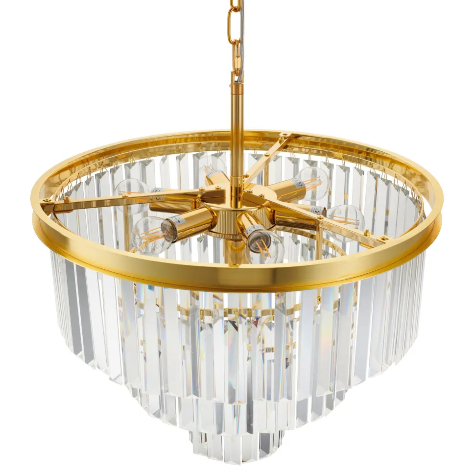 Oświetlenie odgrywa kluczową rolę w aranżacji wnętrz. Lampa wisząca SPLENDORE jest doskonałym przykładem, jak oświetlenie może stać się centralnym punktem każdego pomieszczenia. Wykonana z polerowanego złota i najwyższej jakości kryształków, lampa emanuje niepowtarzalnym blaskiem, wprowadzając do wnętrza nutkę luksusu i elegancji. Jej unikalna, trójwarstwowa konstrukcja o średnicy 50 cm jest udekorowana kaskadą kryształów, które pięknie załamują światło, tworząc niepowtarzalną kompozycję światła i cienia.
