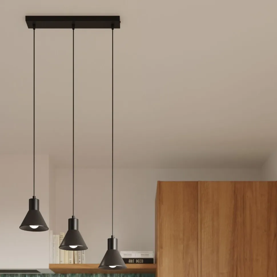 TALEJA to seria klasycznych lamp wiszących w wersji z 1 lub 3 kloszami. Łagodnie rozchylone, zapewniają dużo światła, które równomiernie otula swoim blaskiem przestrzeń. Uniwersalny design pozwala z sukcesem wykorzystać lampę w dowolnym wnętrzu. Dzięki prostemu kształtowi pozostawia ona przestrzeń dla innych elementów wystroju, chociaż w wersji z 3 kloszami na różnych wysokościach potrafi przyciągnąć zaciekawione spojrzenia. Jest dostępna w dwóch klasycznych kolorach: nieprzeniknionej czerni i nieskazitelnej bieli.