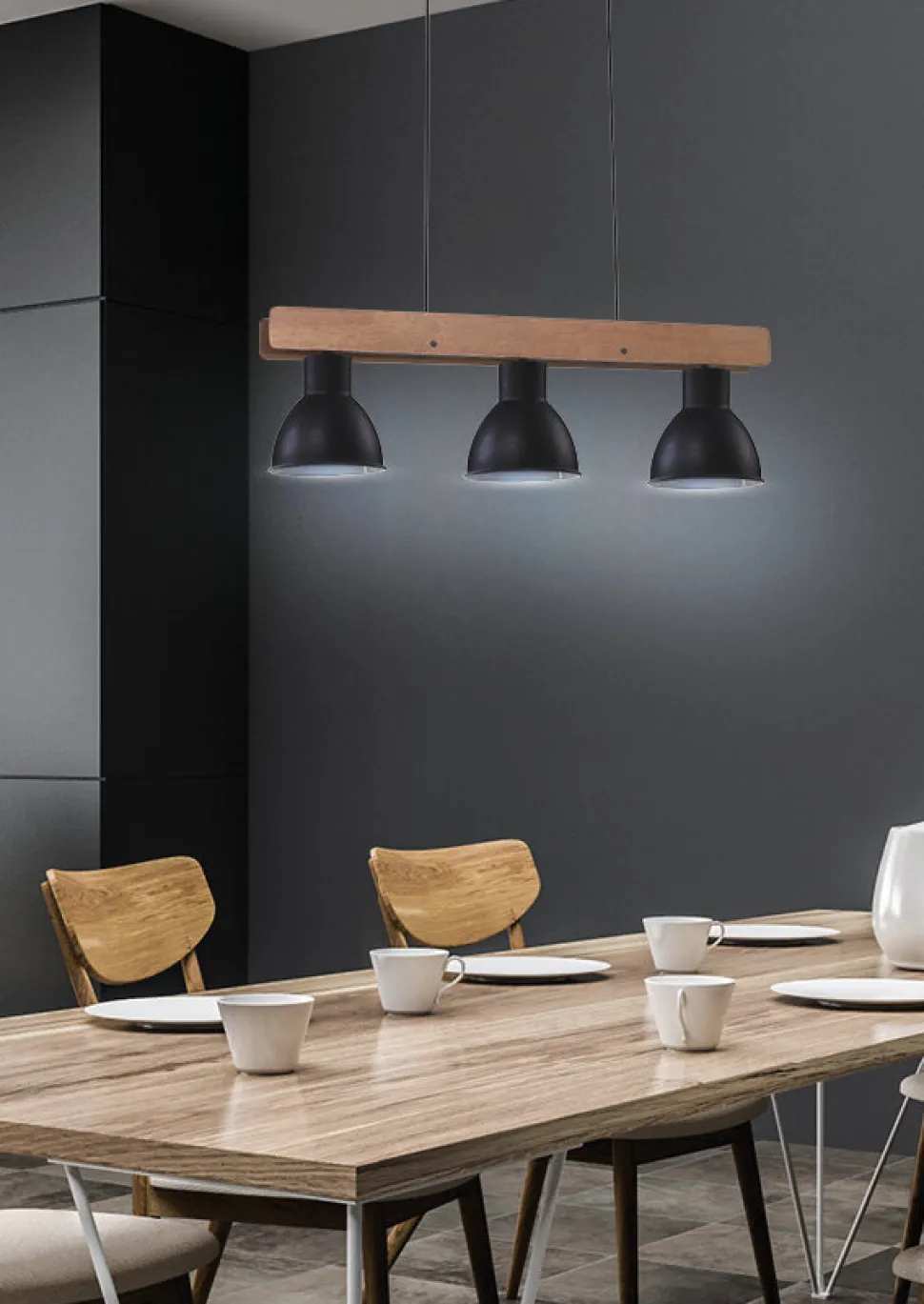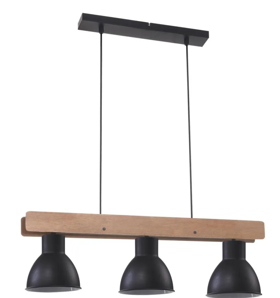 Poczuj atmosferę loftu w swoim domu z lampą wiszącą Vario. Wykonana z czarnego metalu i naturalnego drewna, łączy w sobie elegancję i surowość, co czyni ją idealnym dodatkiem do każdego wnętrza o minimalistycznym, loftowym lub industrialnym charakterze. Trzy metalowe klosze nie tylko dodają masywności konstrukcji, ale także skupiają światło w wybranych miejscach, co sprawia, że lampa doskonale sprawdzi się zarówno w salonie, kuchni, jadalni, jak i biurze czy garderobie.