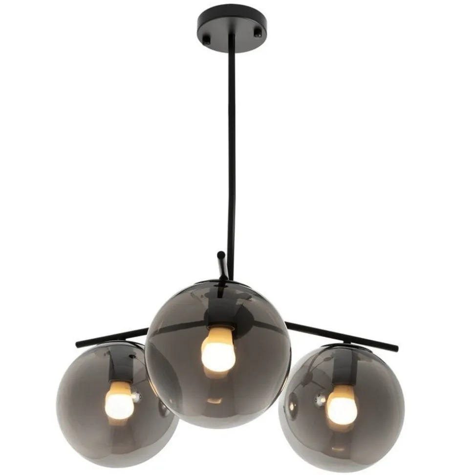 Największą dekoracją lampy VENUS-3 są trzy duże klosze w odcieniu szarości przytwierdzone do metalowej rurki.