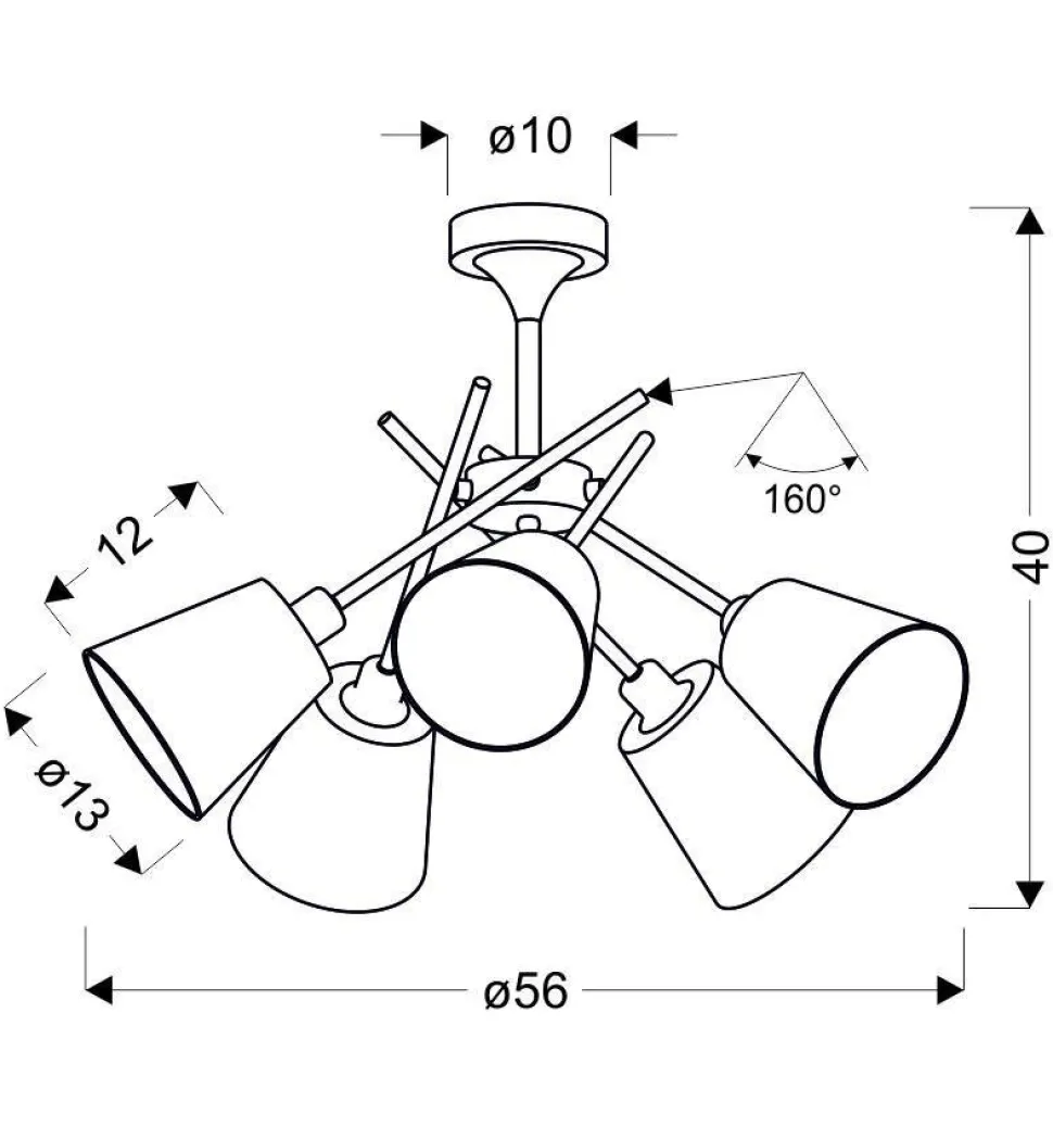 - Posiada obrotowe ramionka, które pozwalają na dowolne ustawienie abażurów.